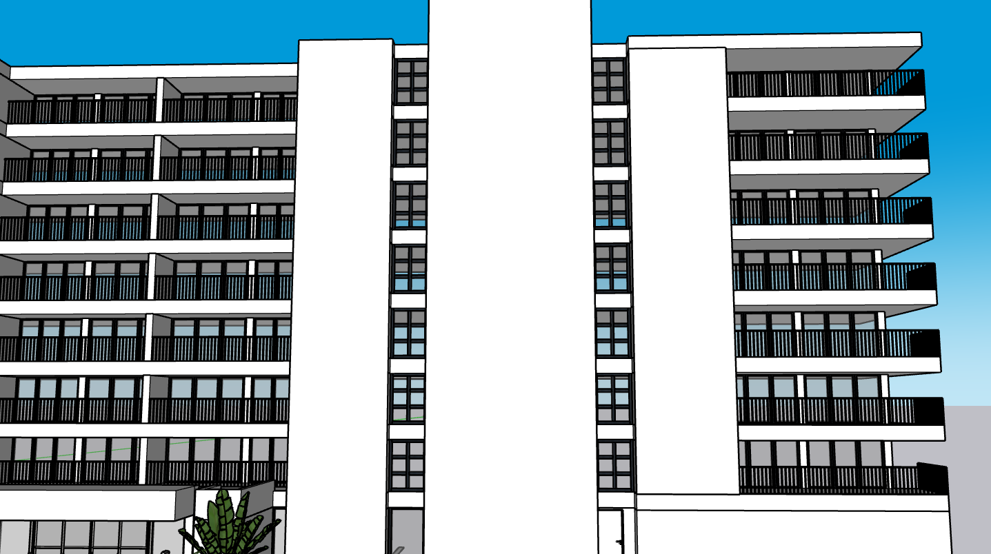 all windows have 6 glass panels from the second floor till the last floor and make the picture in day time so it is not that yellow and no neighbors