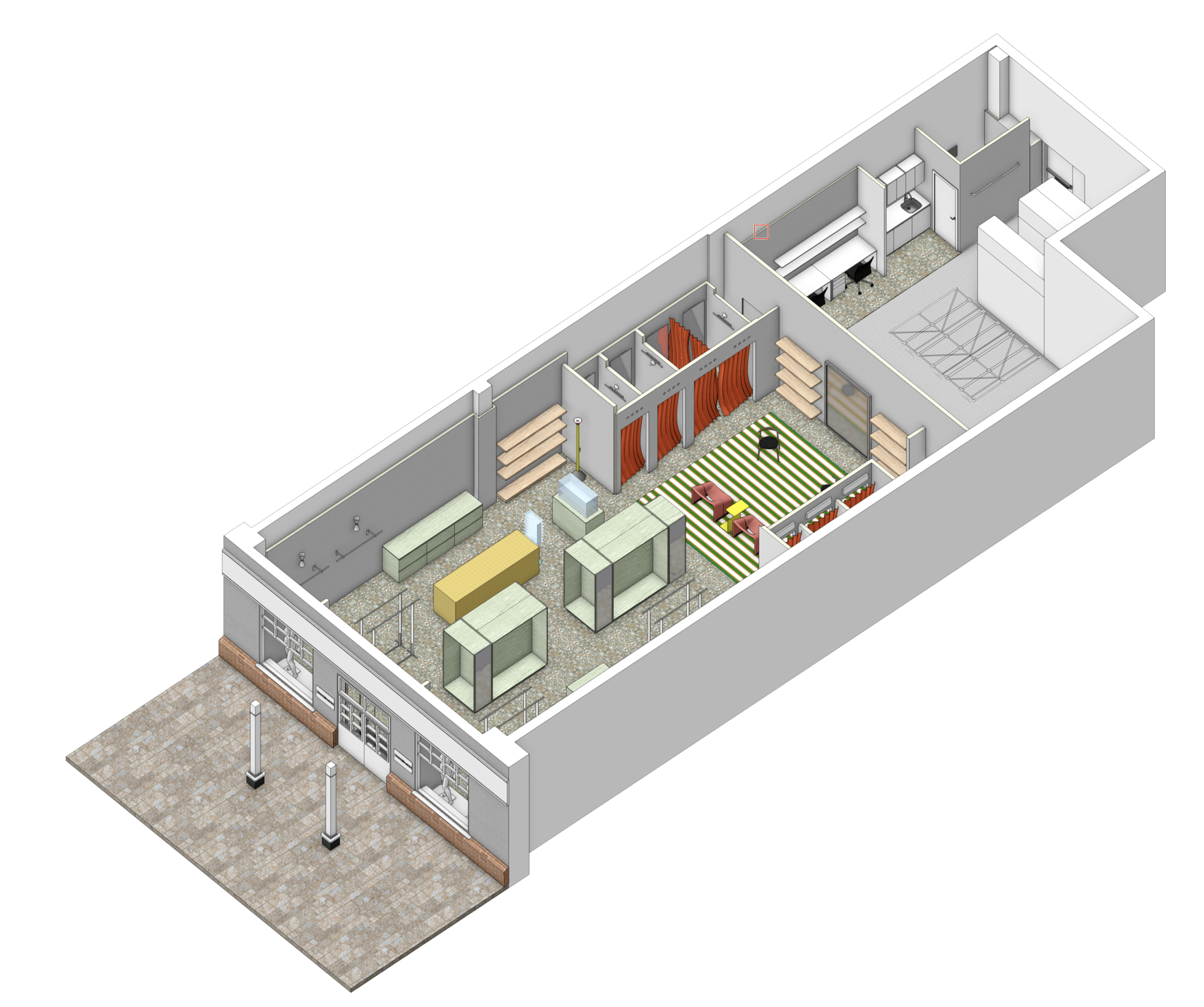 can you enhance the attached 3d isometric view i have done in vectorworks in a style similar to morpholio trace or procreate add linework as if hand made by human with a pilot pen to trace the main geometry don t change the geometry or aspcet ratio everything should remain as it is also keep the external frame border and the white background no paper tint add very soft shadows and textures keep the original colours