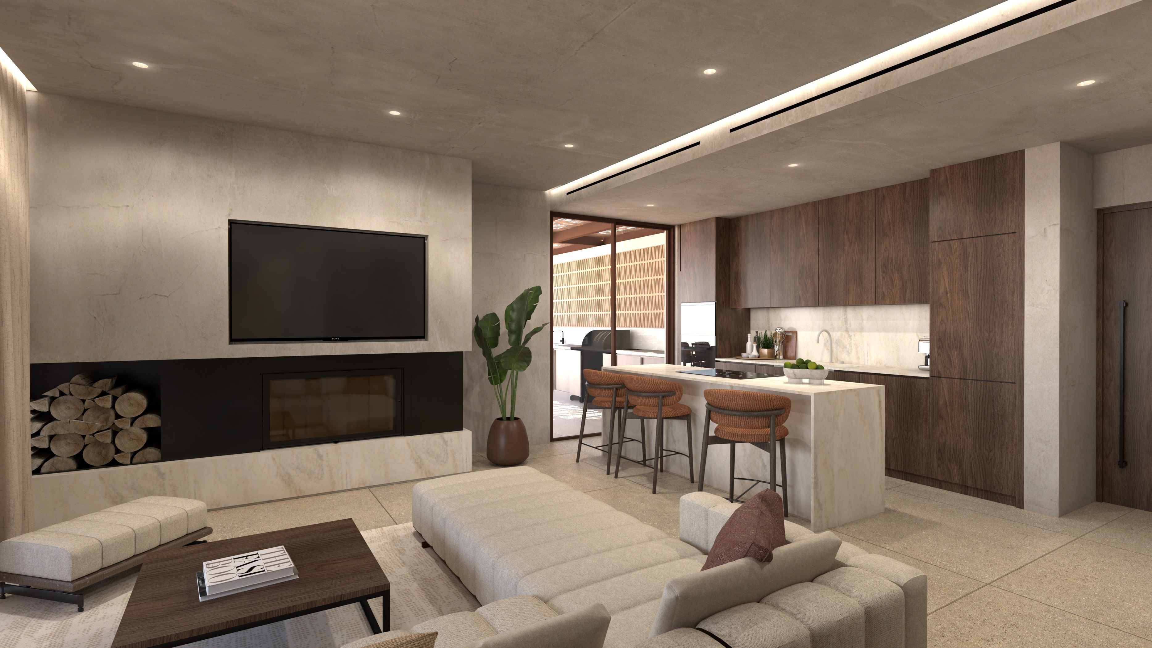 a hyper realistic image of a living room interior warm afternoon light