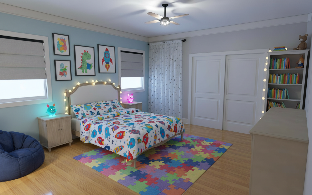 convert this floor plan into a realistic isometric 3d view of a full house show the space from an elevated angle with furniture walls and details visible use the same furniture as shows on the plan do not change the orientation of the floorplan