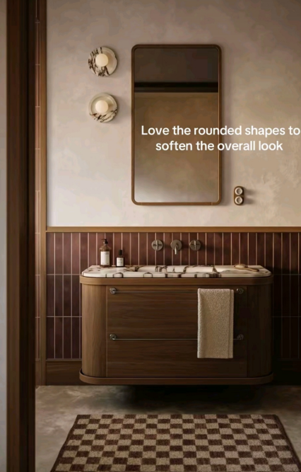 interior shot design a bathroom using the color palette from the attached image maintaining the same style and layout focus on elegance modern elements and cohesive colors include fixtures cabinetry and decor that match the aesthetic of the reference image
