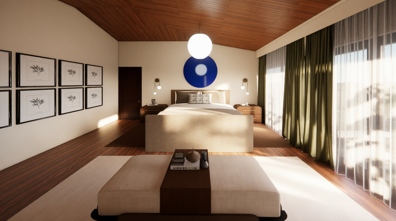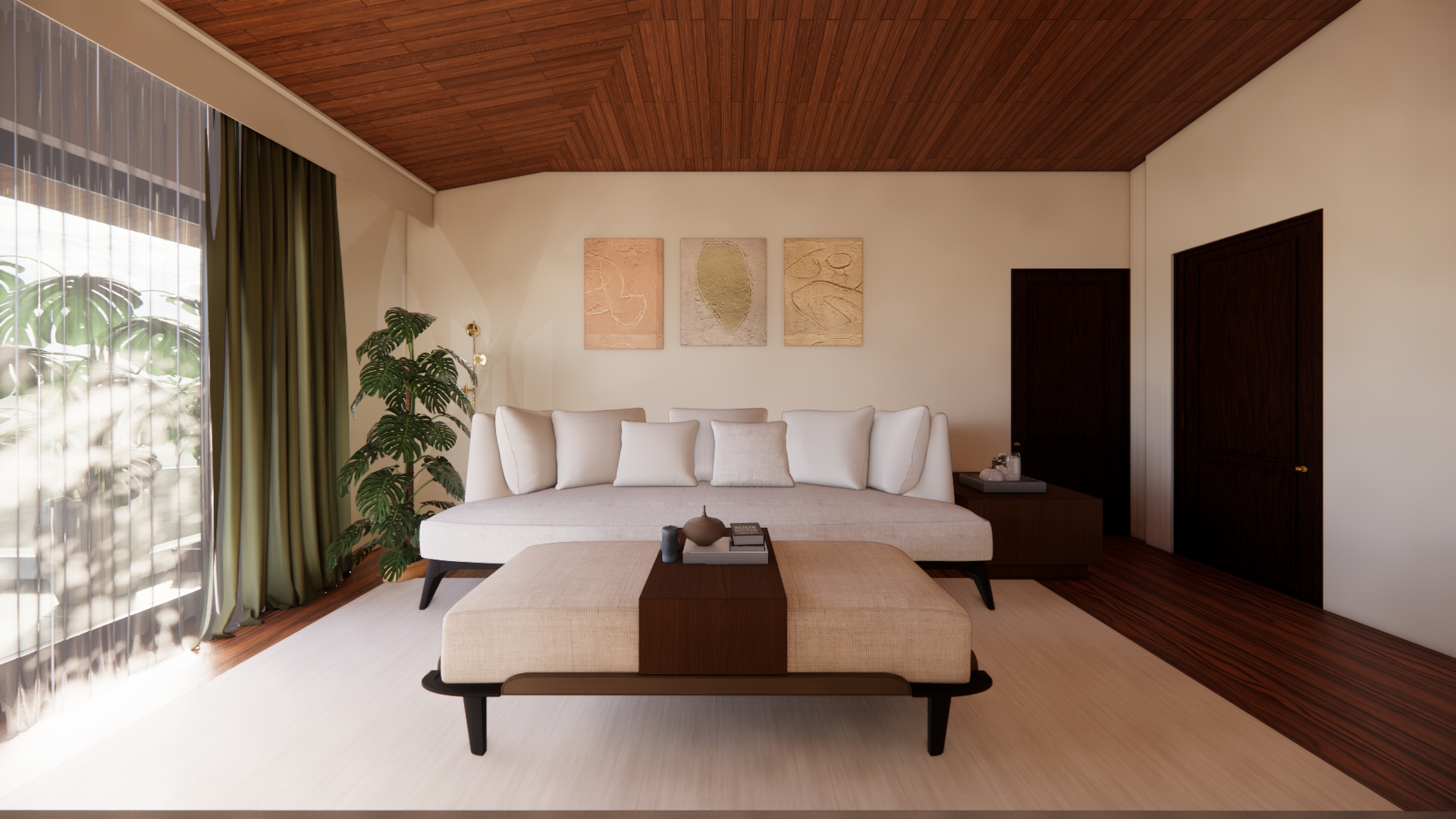 conserva la distribucion y forma actual de la habiatcion y muebles mejorando un poc las texturas conservando colores