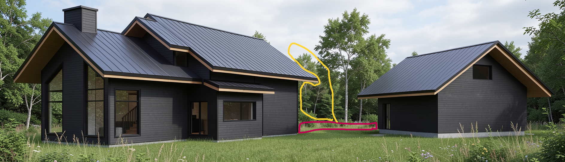 conserver exactement cette image enlever la v g tation derri re la maison et le garage dans la zone centrale