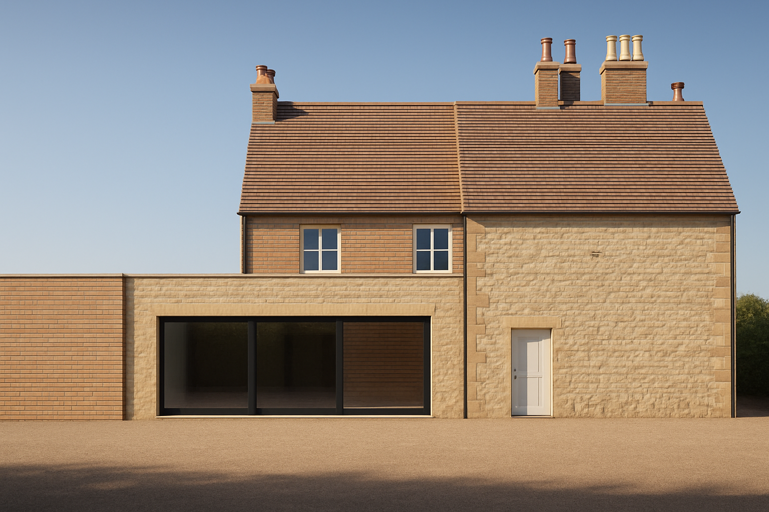 change ceiling to a dark charcoal suspended ceiling grid with square ceiling lights in every third ceiling grid of full ceiling tile size include glazing to door and wall to right side light timber oak flooring throughout add some vegetation throughout the kitchen area change the seating around the round table to a grey fabric finish kitchen units to be dark navy blue