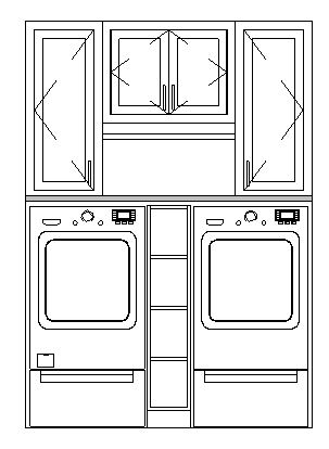 render this laundry built in elevation with a light bright rendering the appliances are gray