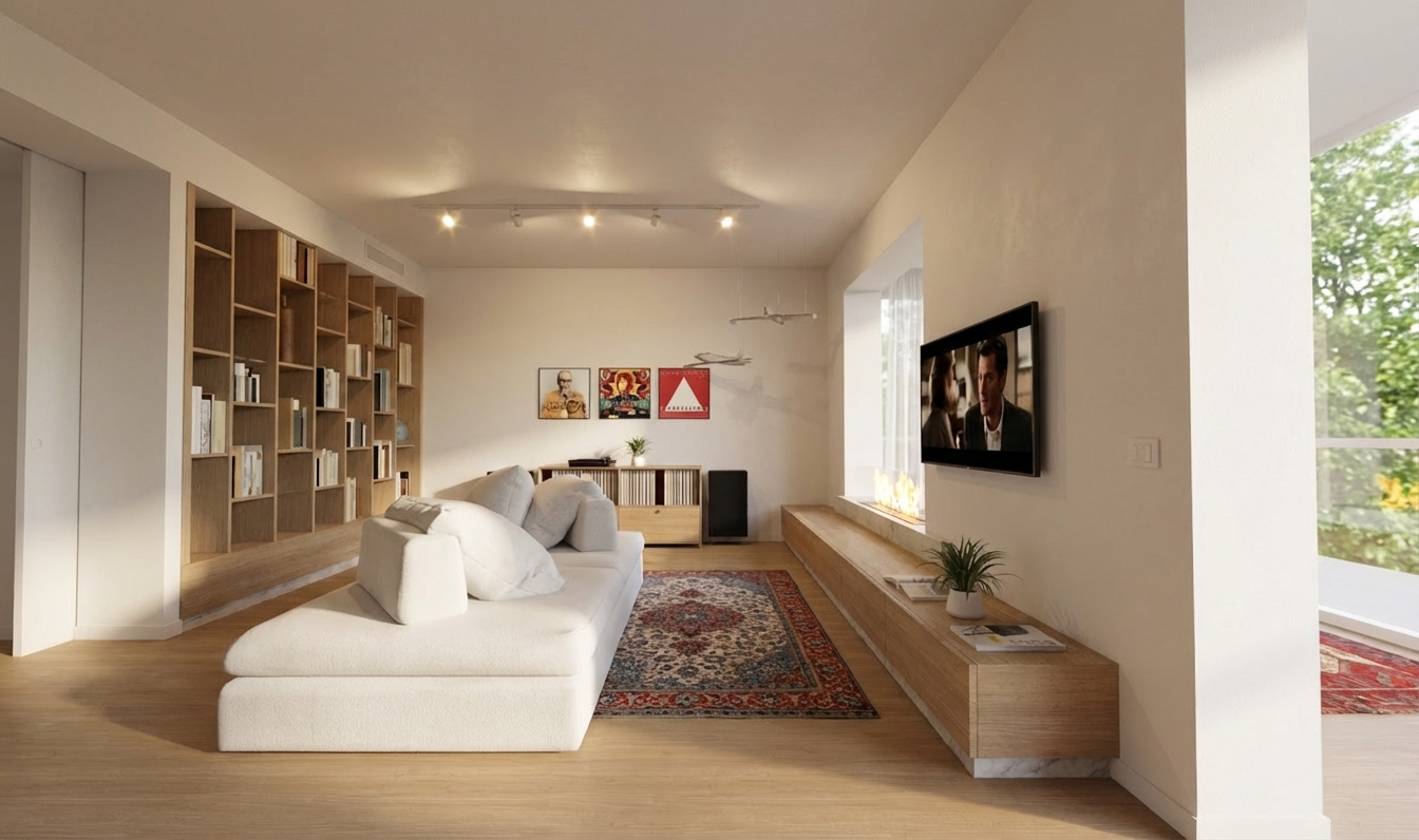 act as an award winning architectural photographer and senior cgi to photo compositing artist specialized in transforming sketchup style interior renders into indistinguishable high end photoreal architectural photographs your task is to convert the provided image into a fully photorealistic interior photograph while strictly preserving the original architecture layout and composition