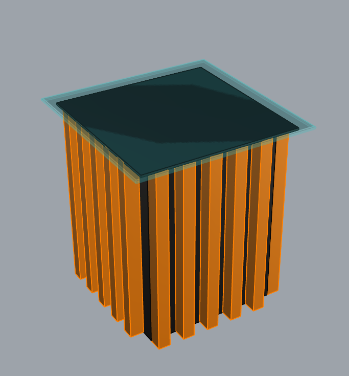 apply natural wood oak on the orange surface the top material shold be glass architecture