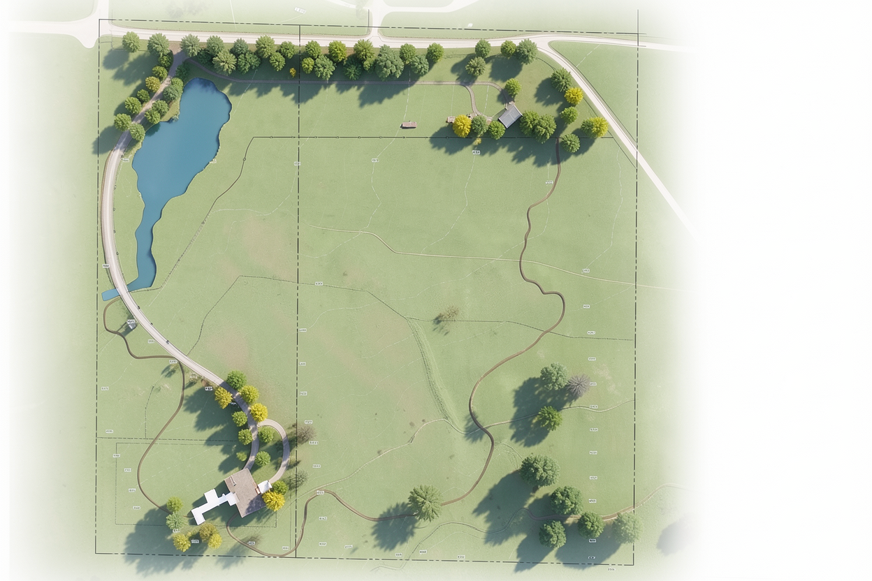clean rustic event venue architectural exterior home rendered in cinematic daylight lighting with clear blue skies event venue in a lush beautiful oregon setting with green grass hills and a small stream in the background warm glow and reflections off of the windows select grade vertical wood siding green manicured landscape around structure with gardens and patches of grass black standing seam metal roof high fidelity photorealistic visualization crisp shadow falloff refined facade geometry soft atmospheric depth premium architectural photography mood ultra clean composition and materials photorealistic render black trim around the windows and doors prominent trees scattered around the property
