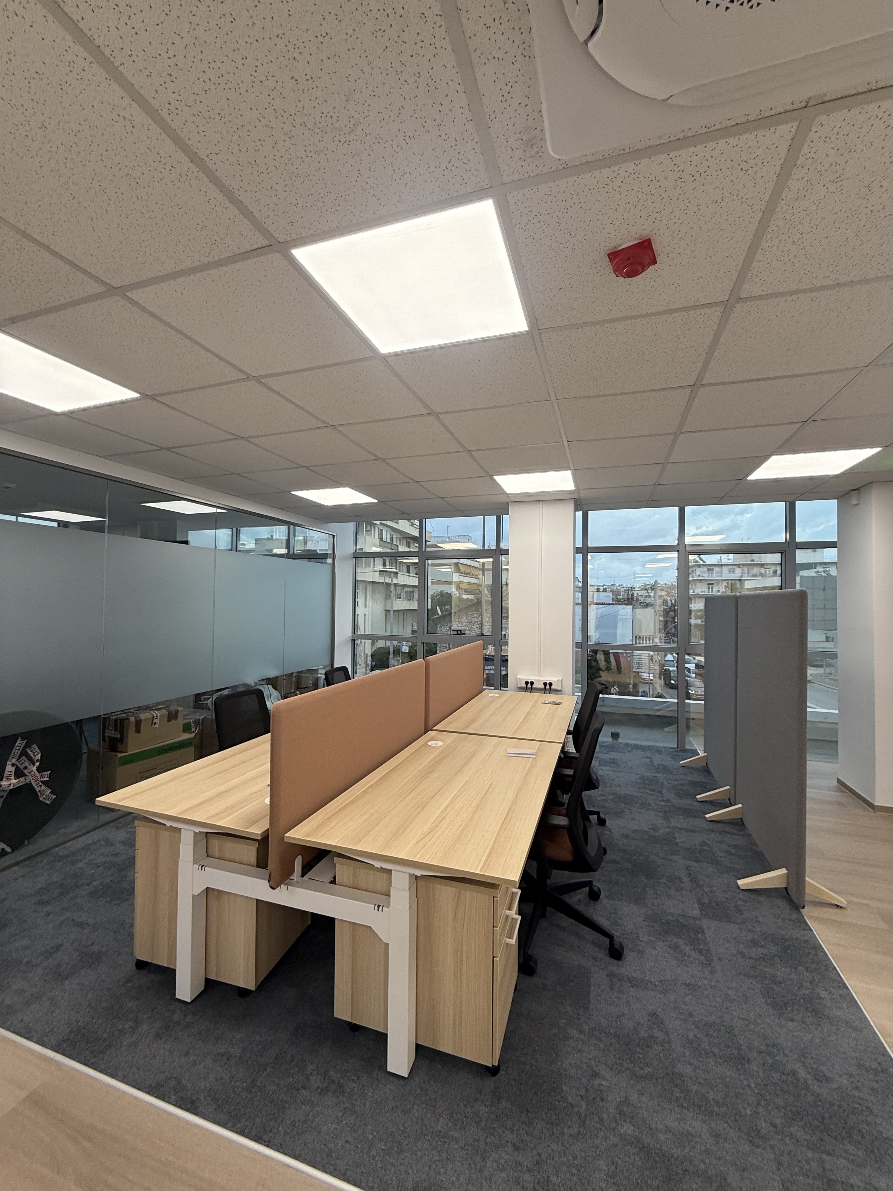 remove the visible boxes and miscellaneous belongings behind the glass partition keep the glass exactly as it is do not modify flooring lighting furniture layout or materials only clean the background so it looks empty and professional