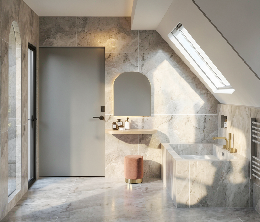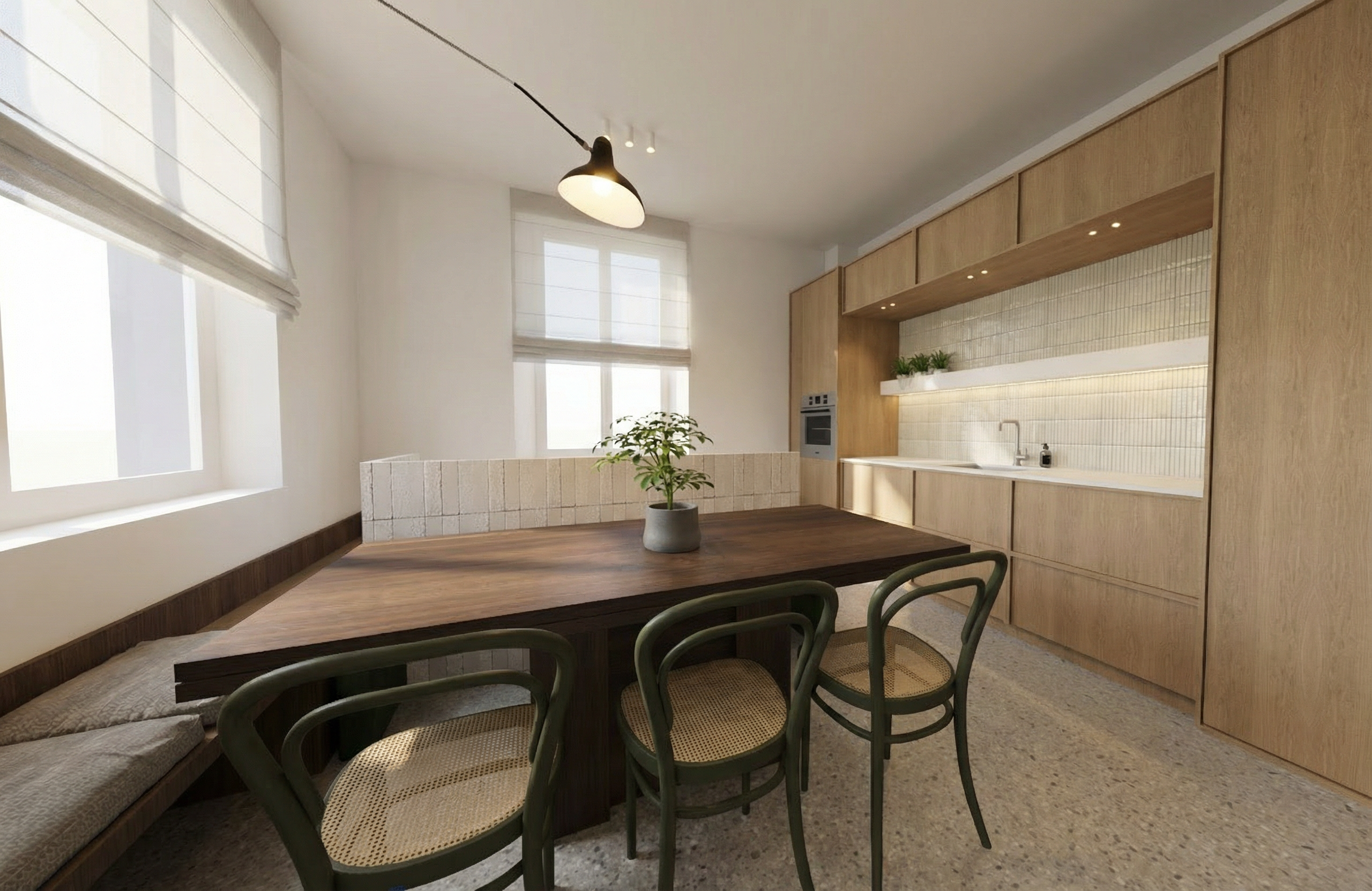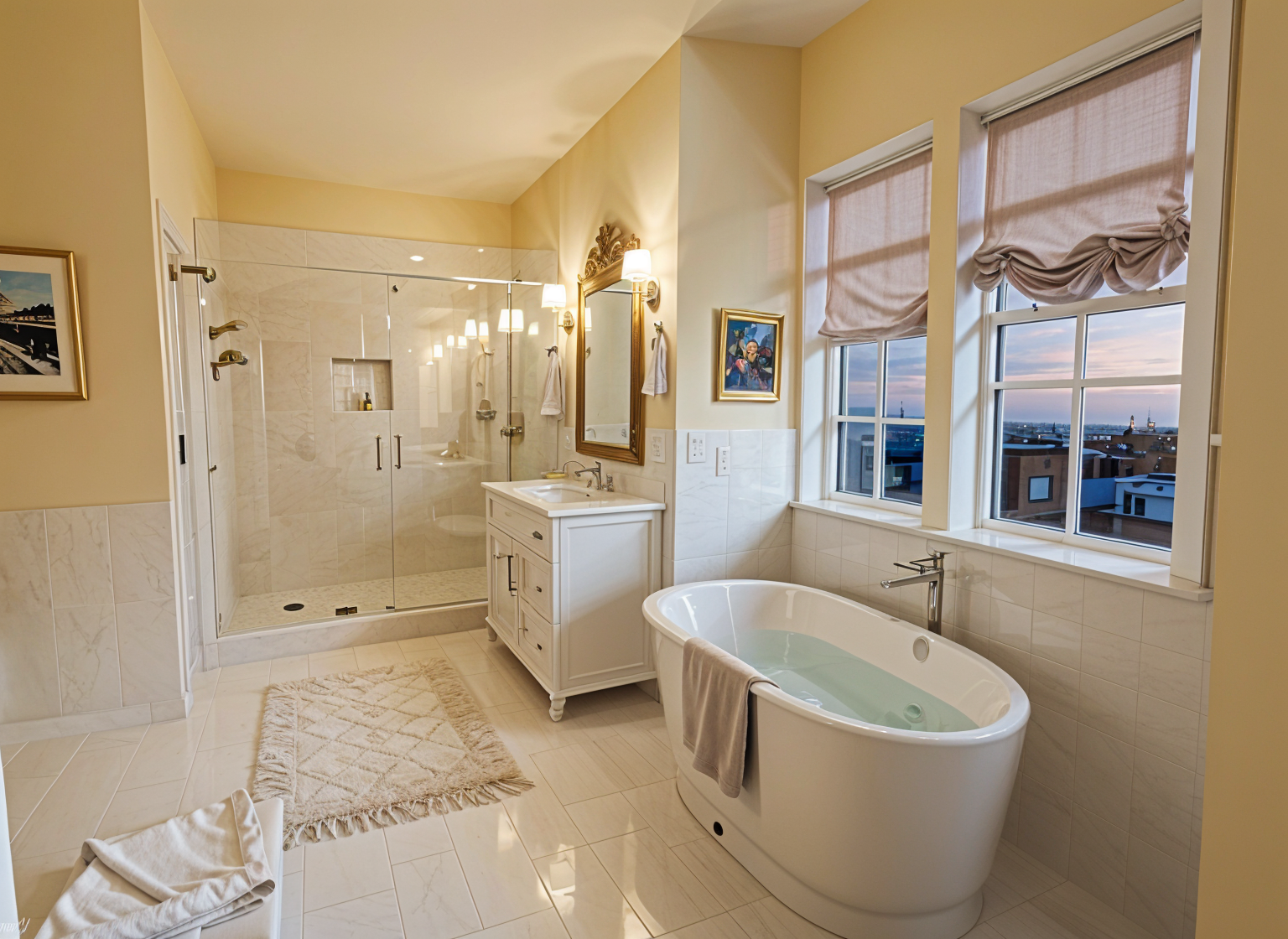 make as photorealistic as possible while keeping textures the same as selection professional landscaping in a lightly wooded scene with good lighting off white stucco dark stone dark roof