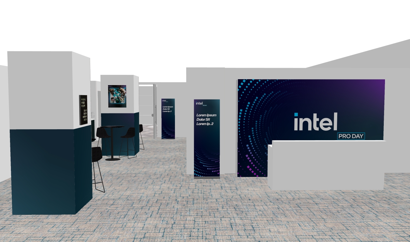 can you add a ceiling with some down lights and make this a realistic rendering please add a female greeter behind the registration desk on the right foreground