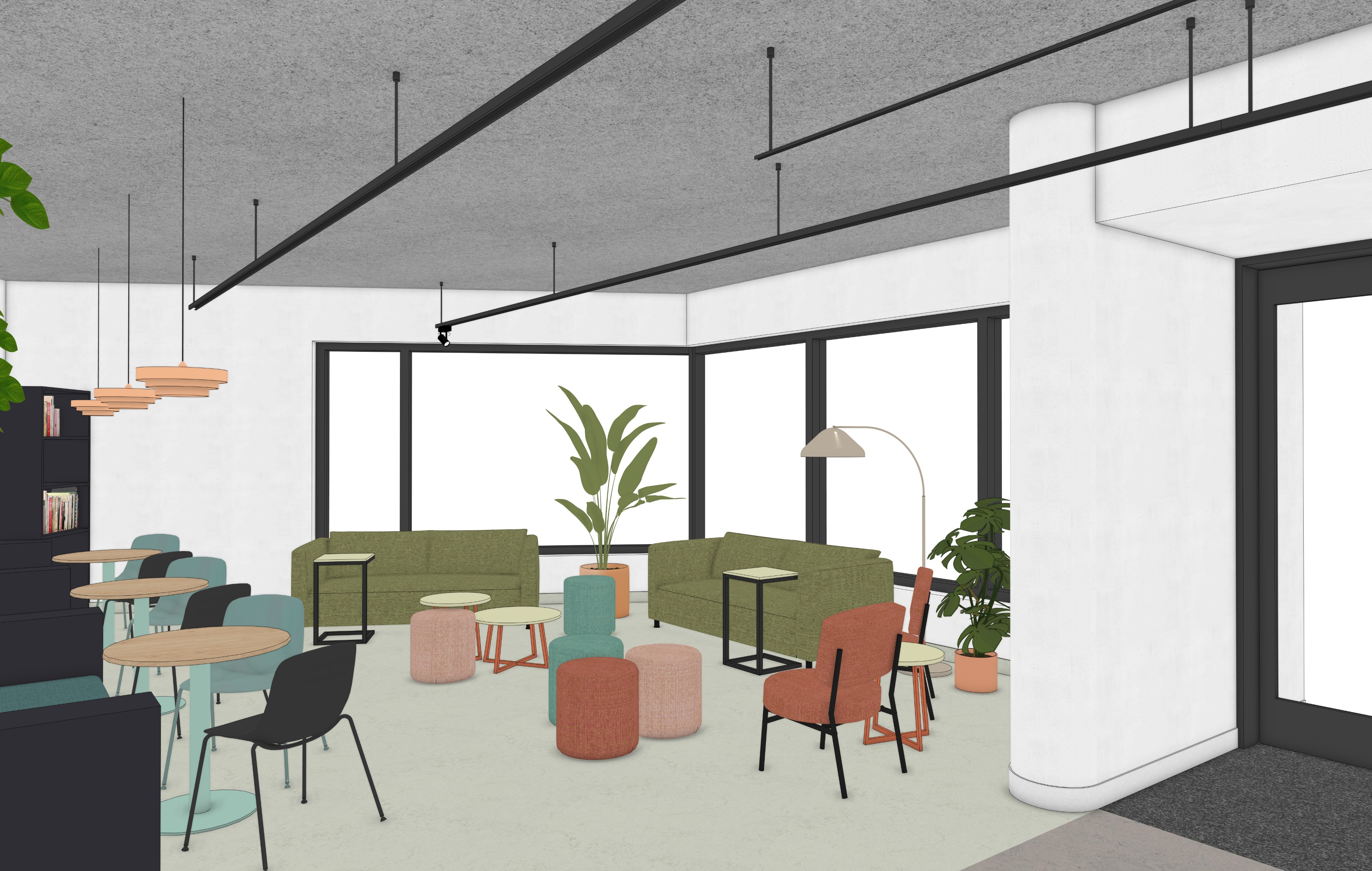 maintain all colors natural daylight turn the lights on ground floor view of small city parking lot bushes the round table tops are h3170 from egger the smaller sidetables are sage green from egger