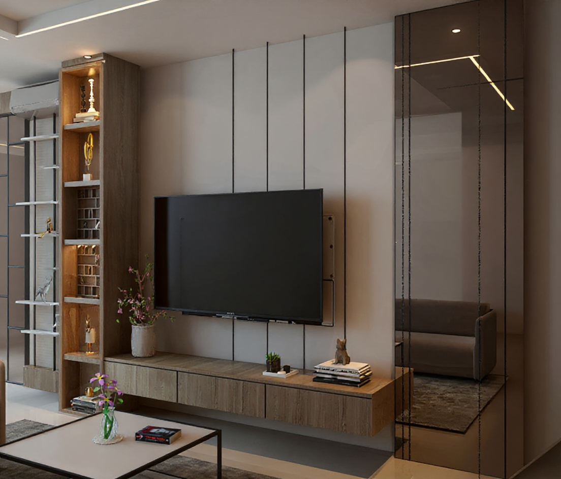 microcement smooth walls and floor modern bathroom no reflection on shower glass night view