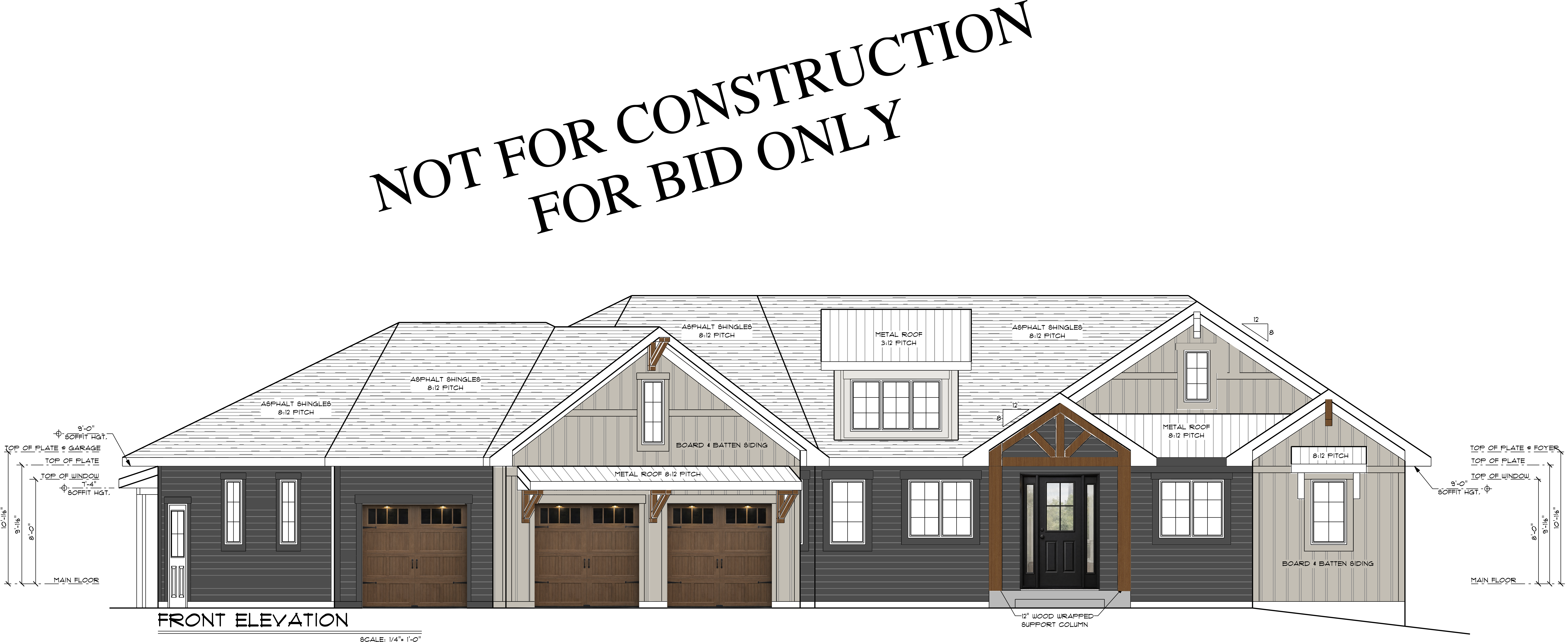 render realistic with landscaping make roof and gutters black and windows black make the white siding a beige taupe greyish white color add side door back to the left make windows black and gutters and doors