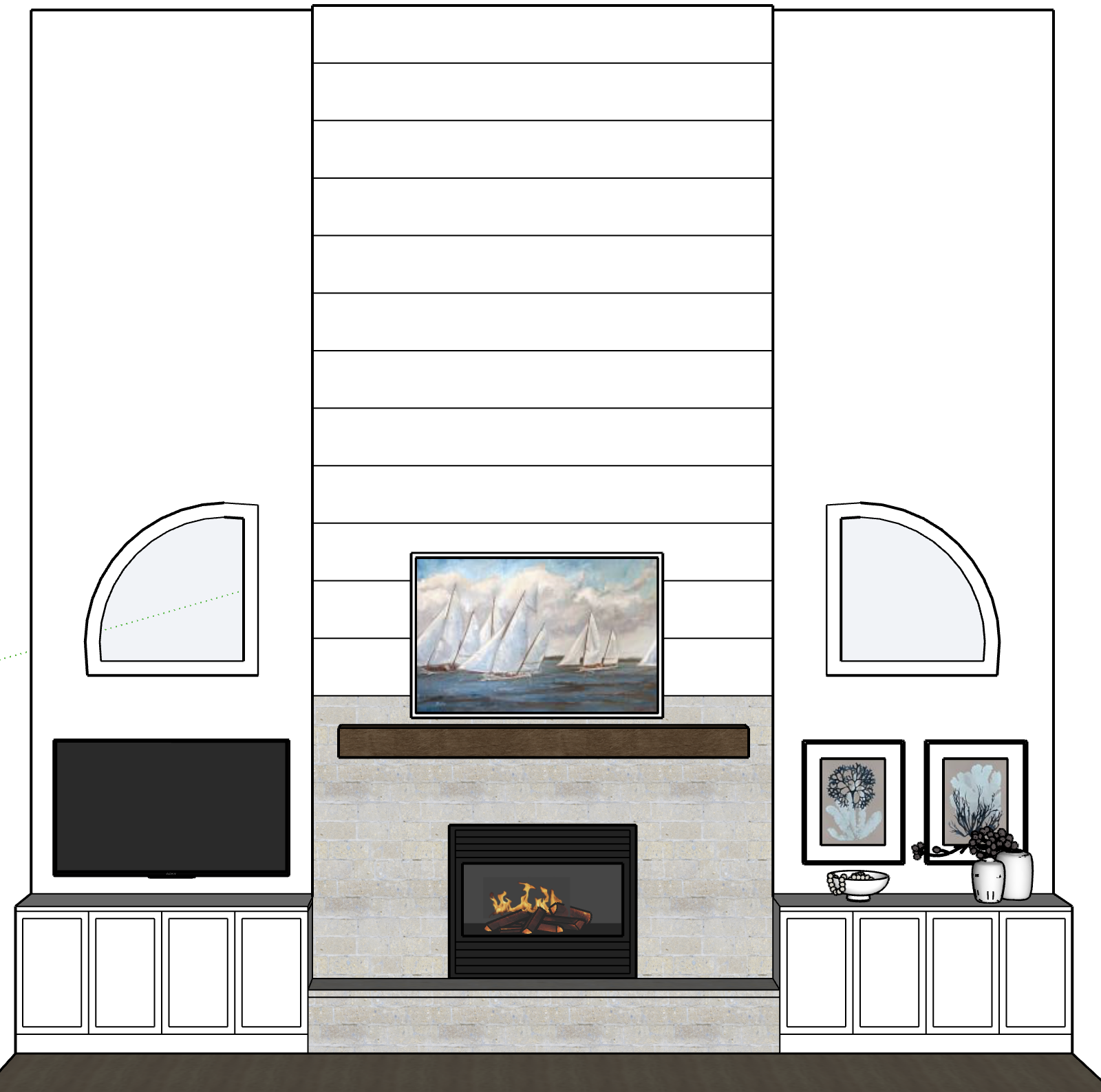 render to look hand sketched in black and white the fireplace wall is sold with 2x4 trim