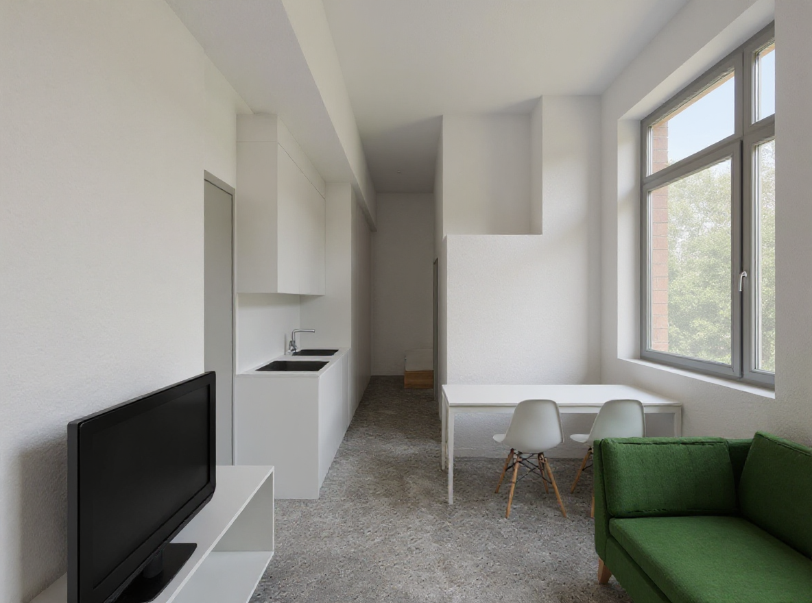 make indoor dinner or galla setting with dinner sett tables with flower and candles warm dimmed light maintain walls accurate but warm them up with uplight spots