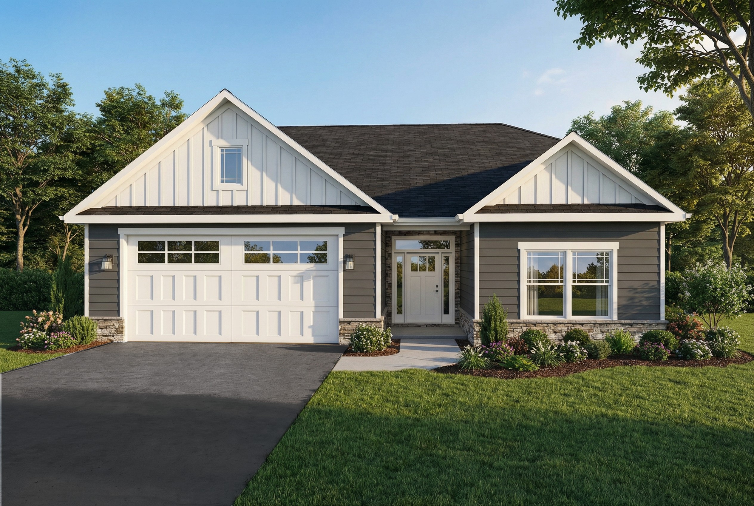 keep the house exactly as it is but zoom out of the photo so you see more front yard and side yard