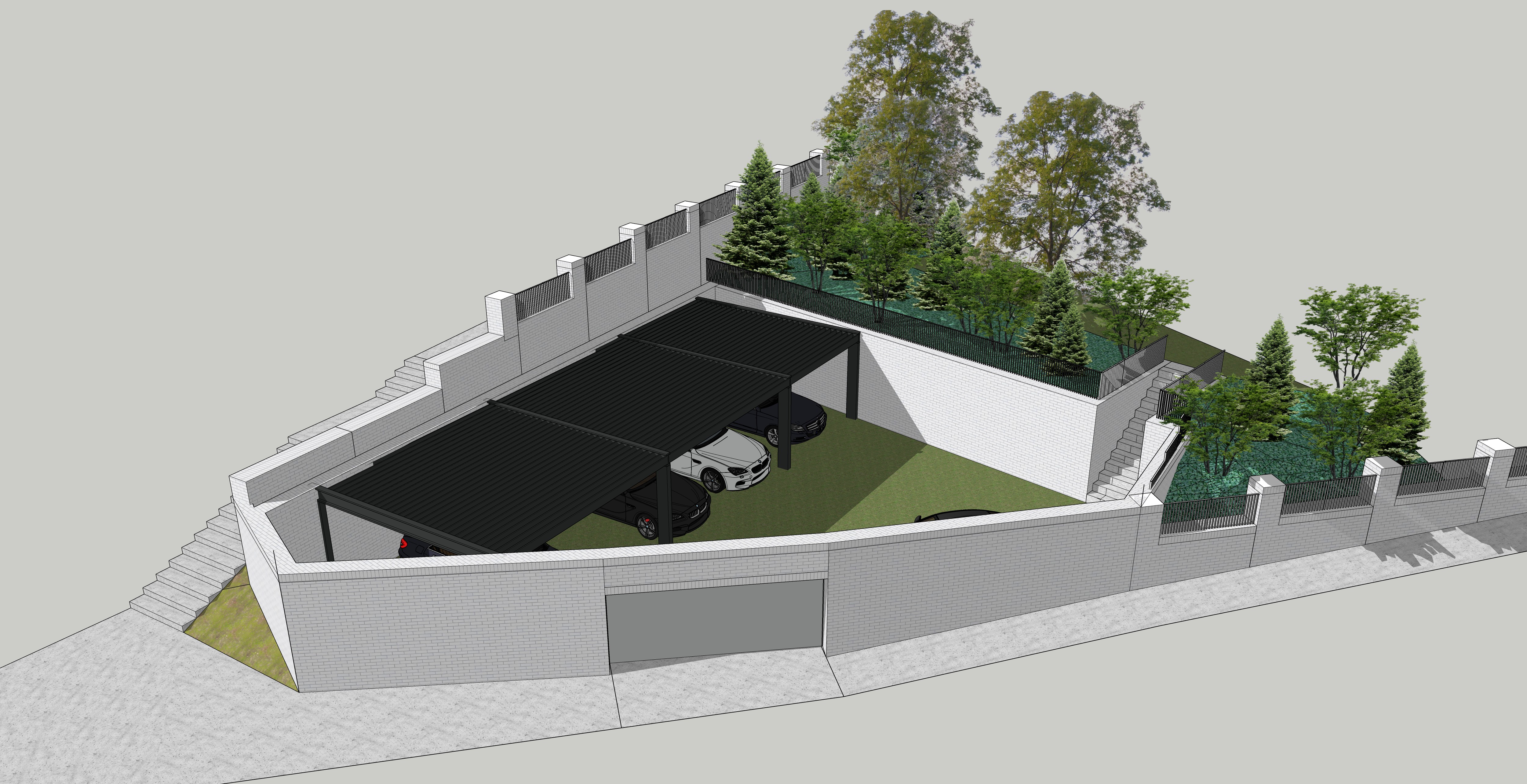 make a 3d realistic visualization without material modifications without changing the background you can design the landscaping of the garden do not add new areas of greenery in front of the fence do not add any other elements to the garden