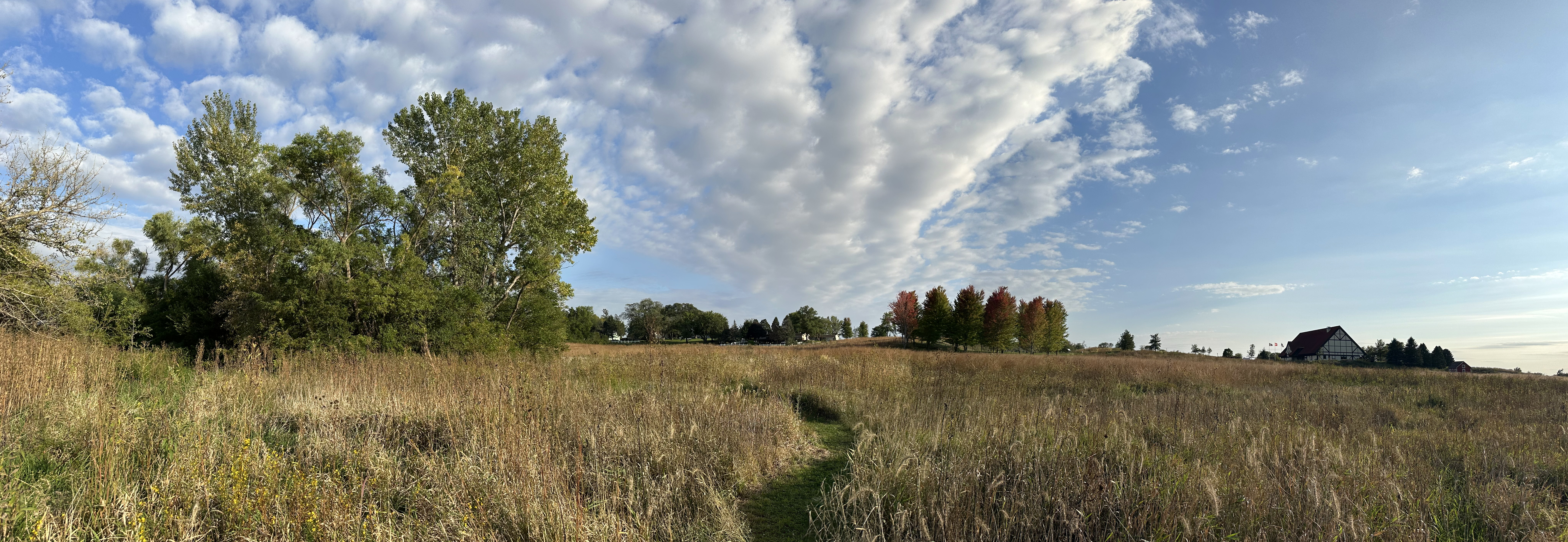 scattered around the path show a children s natural play area with wooden play equipment with lots of children wearing read and white and some danish flag shirts