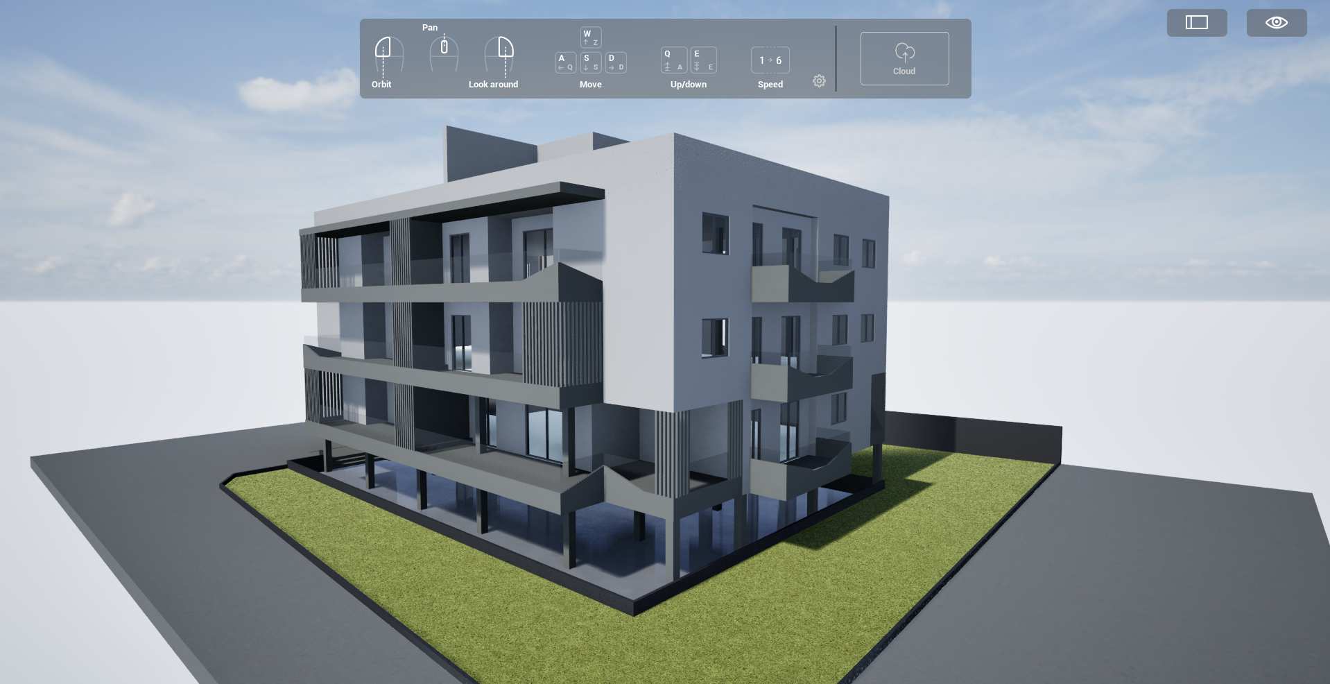 render realistico aggiungi delle piante in fiore e alberi nel giardino solo su prato verde posiziona delle macchine nel garage al piano 1 e arreda i balconi con piante fiori sedie ecc e posiziona delle persone fuori ai balconi o a piano terra in procinto per entrare puoi aggiungermi dei palazzi affianco cosi non sembra che galleggia nel vuoto