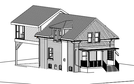 a charming two story modern farmhouse with a mix of brick and shingle cladding the front porch is adorned with white columns complementing the soft blue gray siding the roof is a dark slate gray enhancing the rustic charm windows are large and plentiful framed in crisp white allowing natural light to flood the interior the atmosphere is welcoming and serene with a lush garden surrounding the house filled with vibrant flowers in shades of lavender soft pink and creamy white the sky above is a clear bright blue with fluffy white clouds floating by casting gentle shadows on the ground