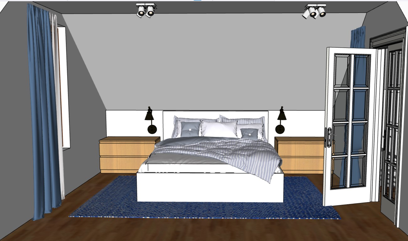 dark blue night only the light of the wall lamp and the ceiling lamp light wood floor
