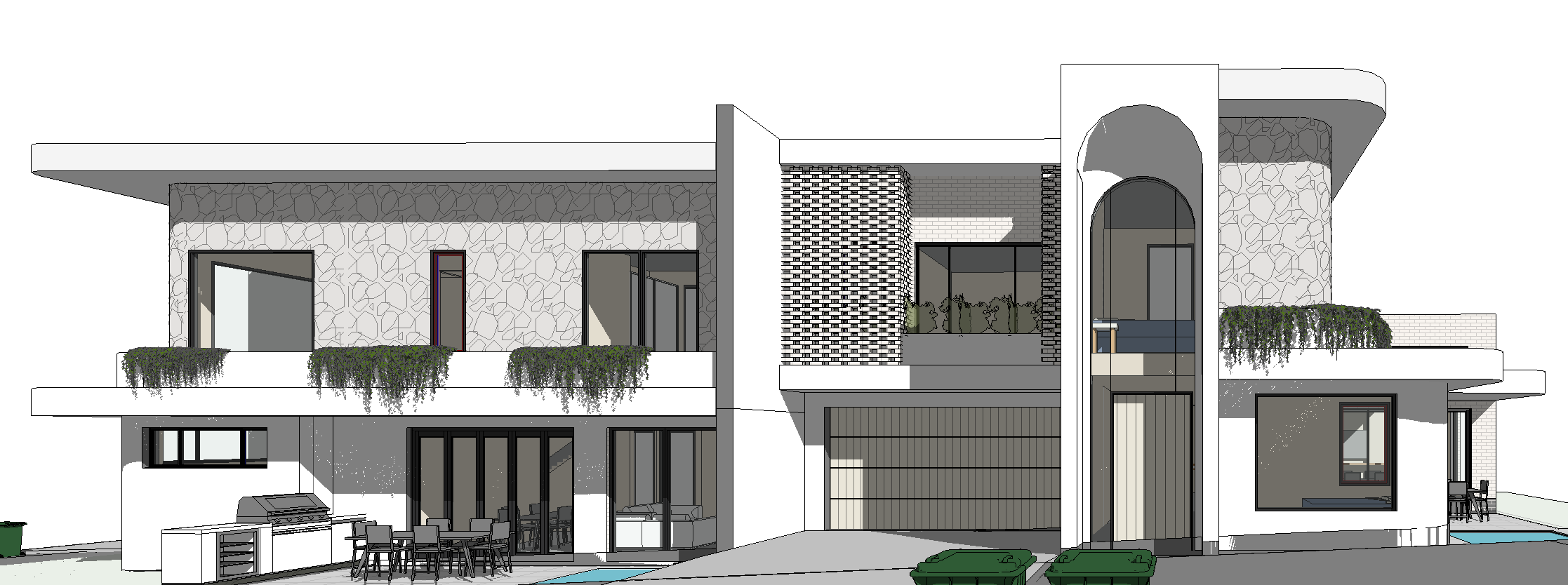render a photorealistic 3d perspective of this house reference the current material style just enhance the oak vertical wall keep model geometry the same windows doors roof walls garage door pavement driveway make a lush vegetation that looks native san souci nsw do not change the view only enhance the current materials and make the landscape nicer vegetation detailed textures in the wood siding and glass reflections and a vibrant clear sky with light atmospheric depth render in hyper realistic architectural visualization quality 8k resolution front yard is landscaping