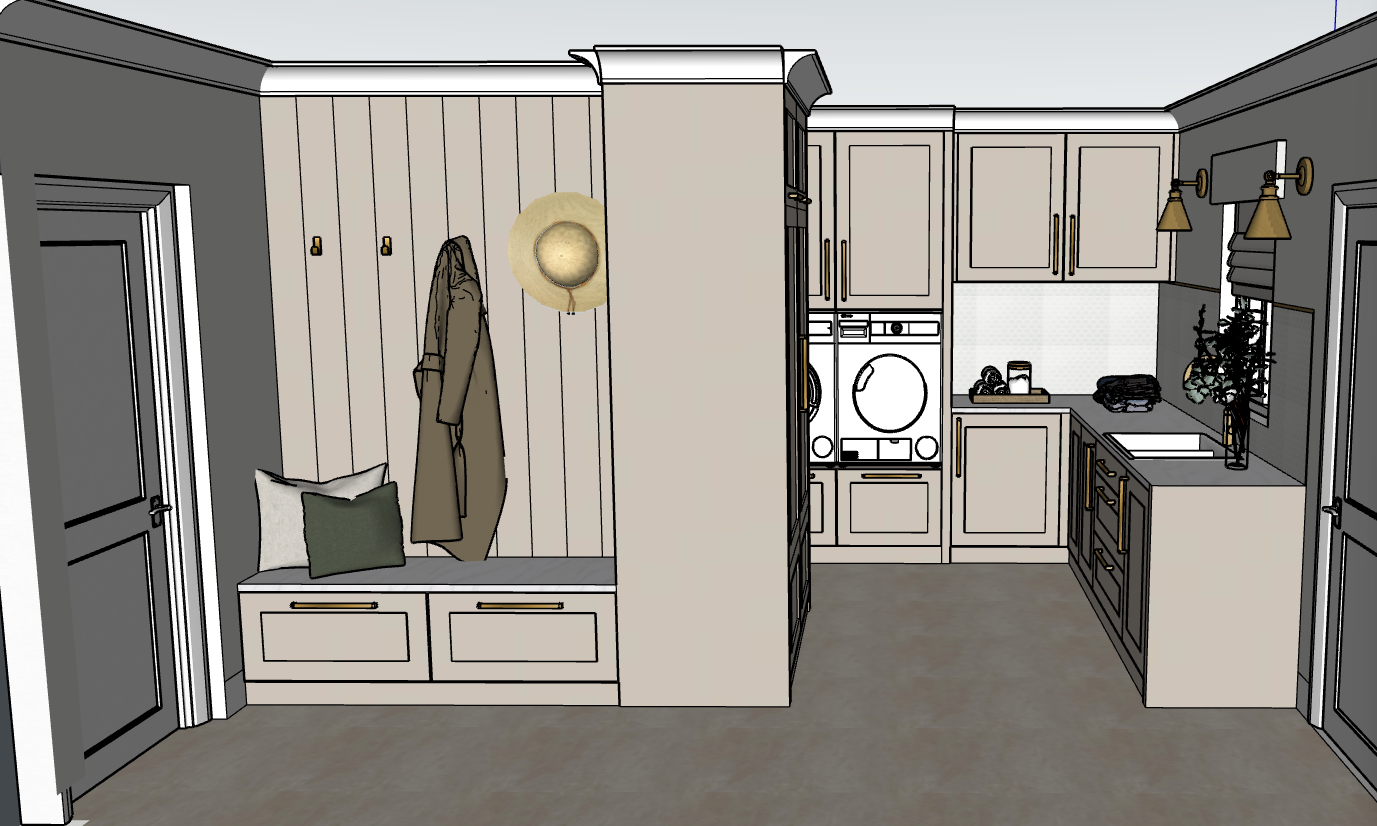 early evening light with wall lights on and led under wall cabinets