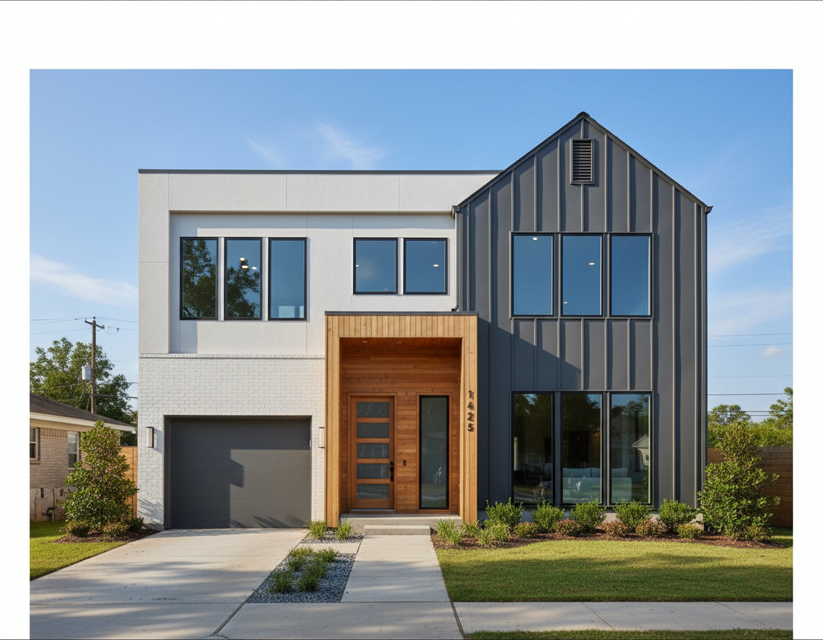 do not change the structure or add anything only do the following replace the chimney all the way to the left with a lighter colored brick only the chimney keep the stucco on the exterior walls next to the chimney