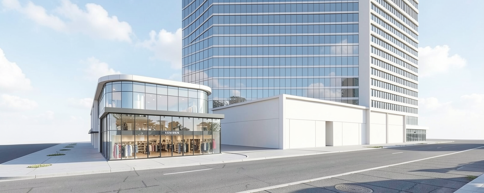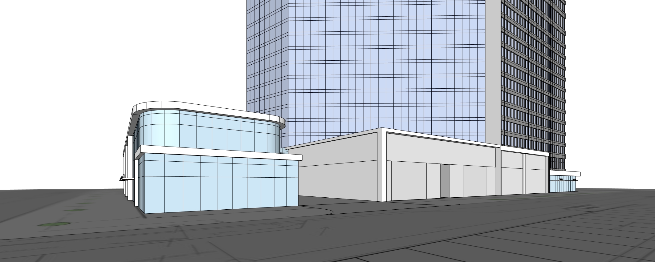 white background maintain mass add retail at ground floor on left mass only daytime view no cars