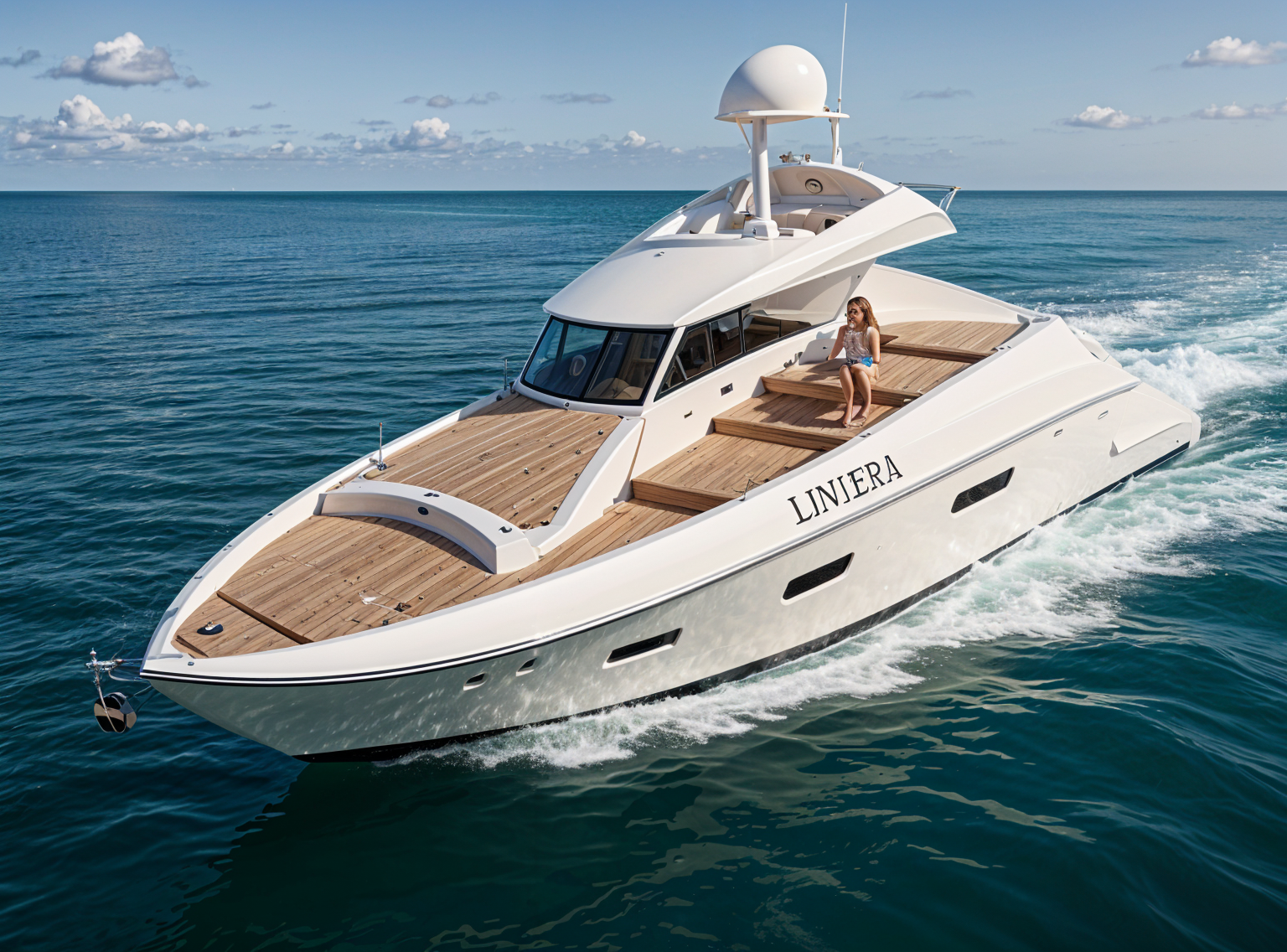 put water all around the yacht put some people in bikini on the yacht put the name lintera on the yacht write the name lintera on the body of the ycht tha name is lintera and not cintera tha name should be lintera lintera with t