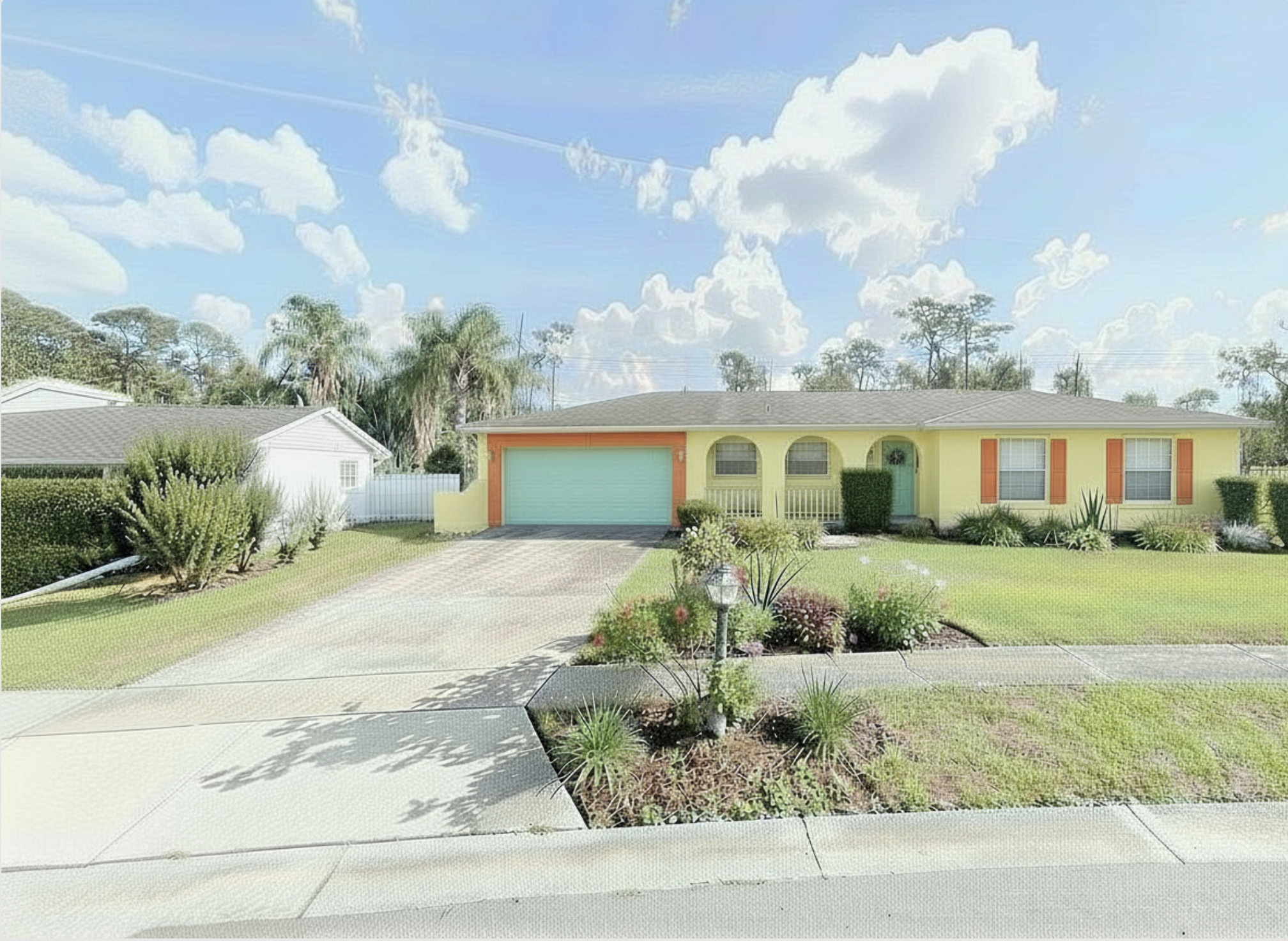 change the main house body color to white and add pendant lights within each of the 3 arches