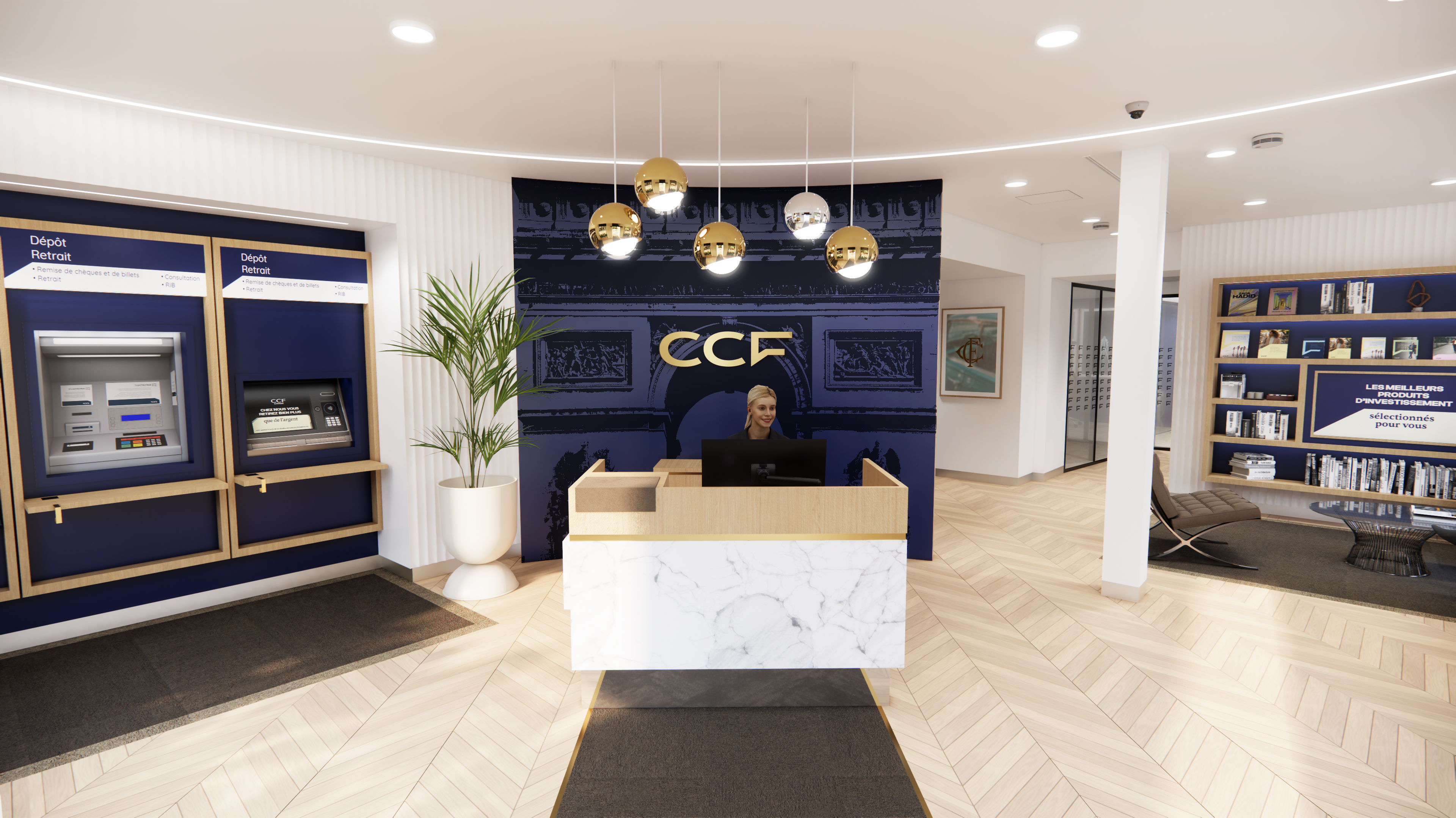 ultra photorealistic modern bank interior