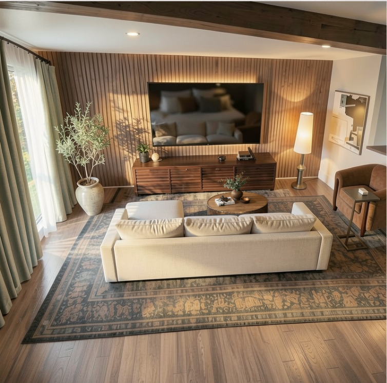 view of room from corner next to potted plant