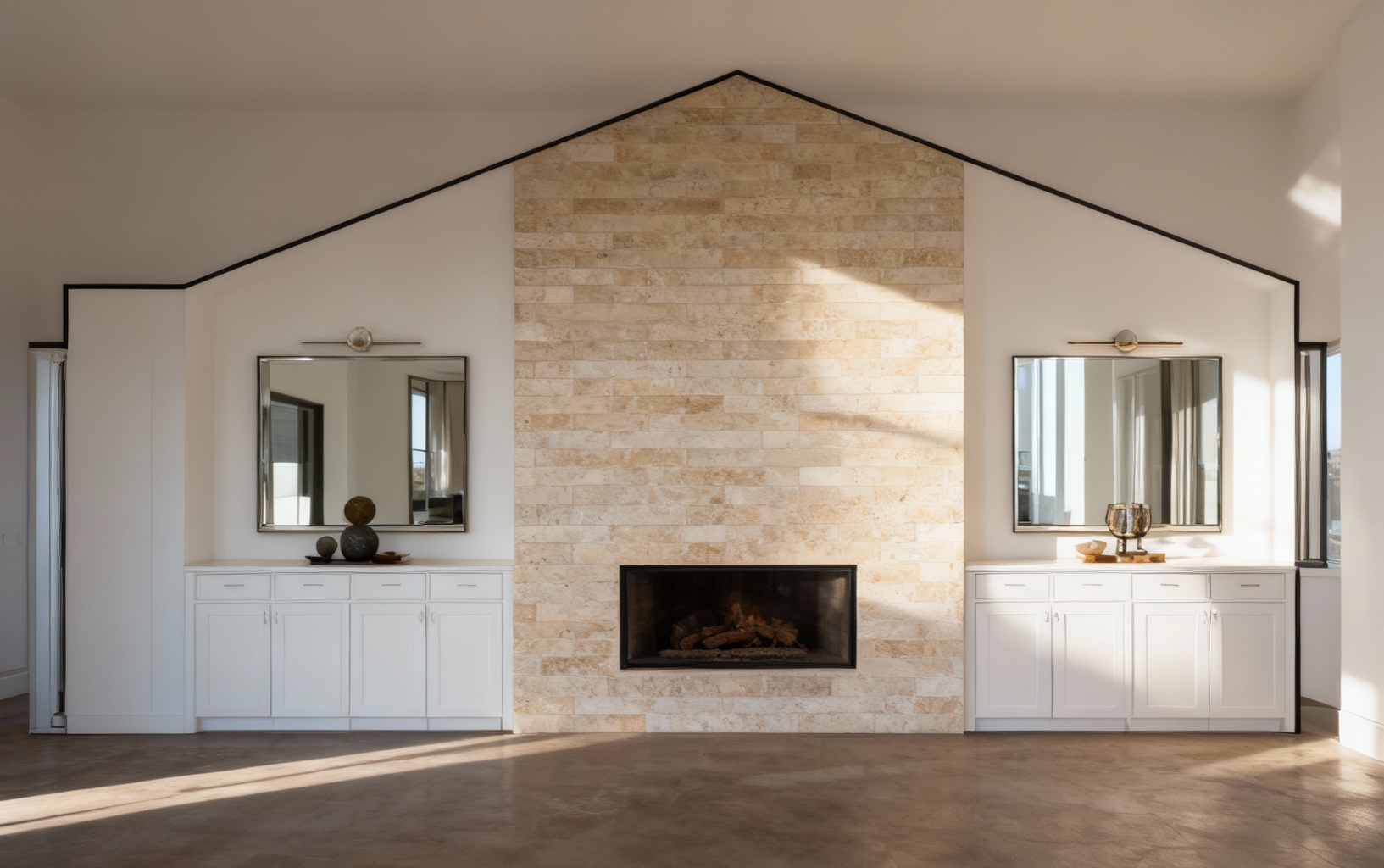 this is the master bathroom elevation the wall and doors are all white paint but tile the inside of the shower there is a glass door with two shower heads on each side have some light come down inside the shower