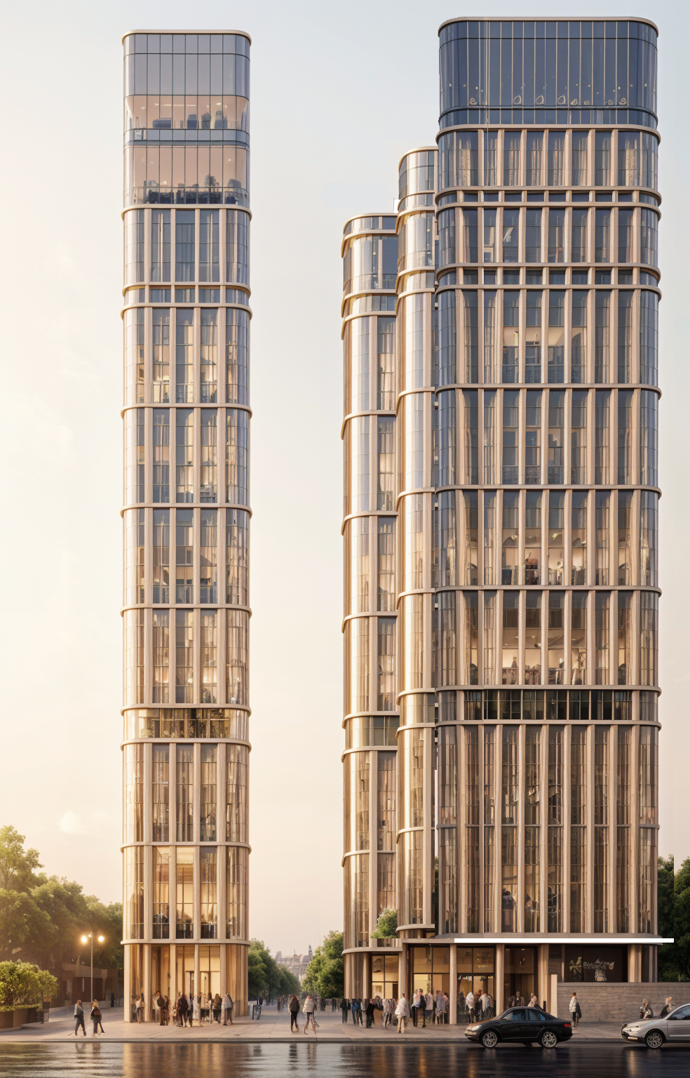 can you adjust geometry and make grid solid elements of the fa ade wider so overall tower has less glass can you change interiors to residential not office and change tone to be more reddish
