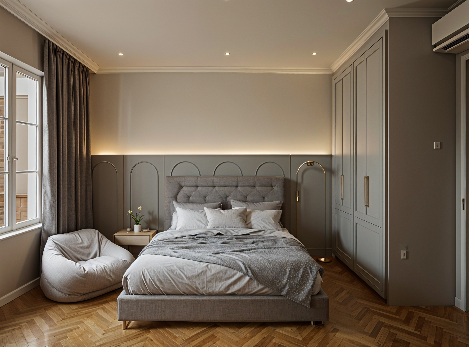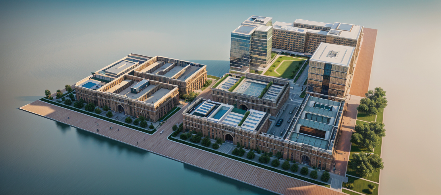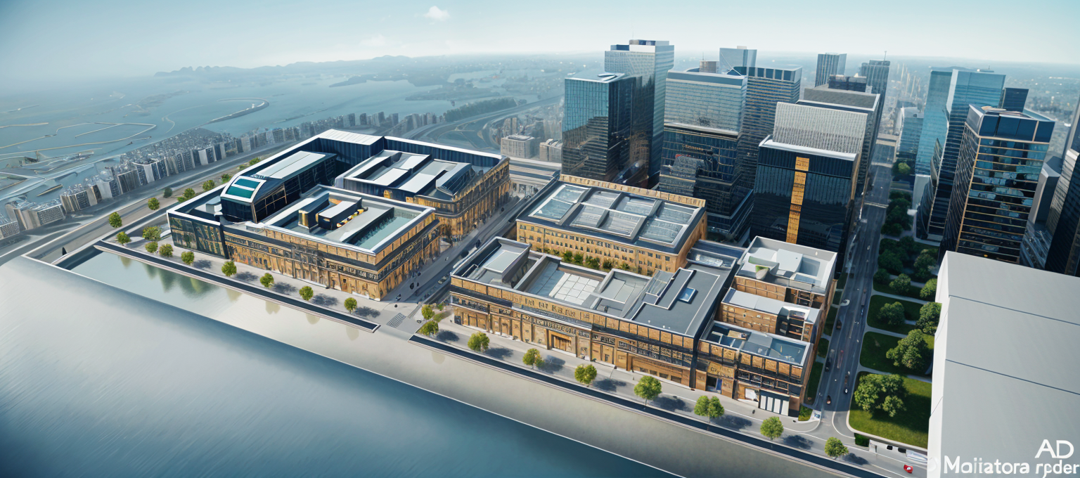 tudor revival exterior shot render a modern industrial workspace with a sleek futuristic design the space features light gray concrete walls and ceiling providing a neutral backdrop add large glass panel windows for natural light framed with muted brown metal introduce vibrant indoor plants to add a touch of greenery and freshness design a minimalist bar area with a matte black finish and white bar stools to achieve a chic contemporary look place a robotic arm in the scene using a combination of crisp white and deep black for a high tech appearance include modern minimalist furniture with light wood accents for warmth the atmosphere should feel innovative and inviting with soft ambient lighting accentuating the space s cutting edge yet welcoming vibe architecture