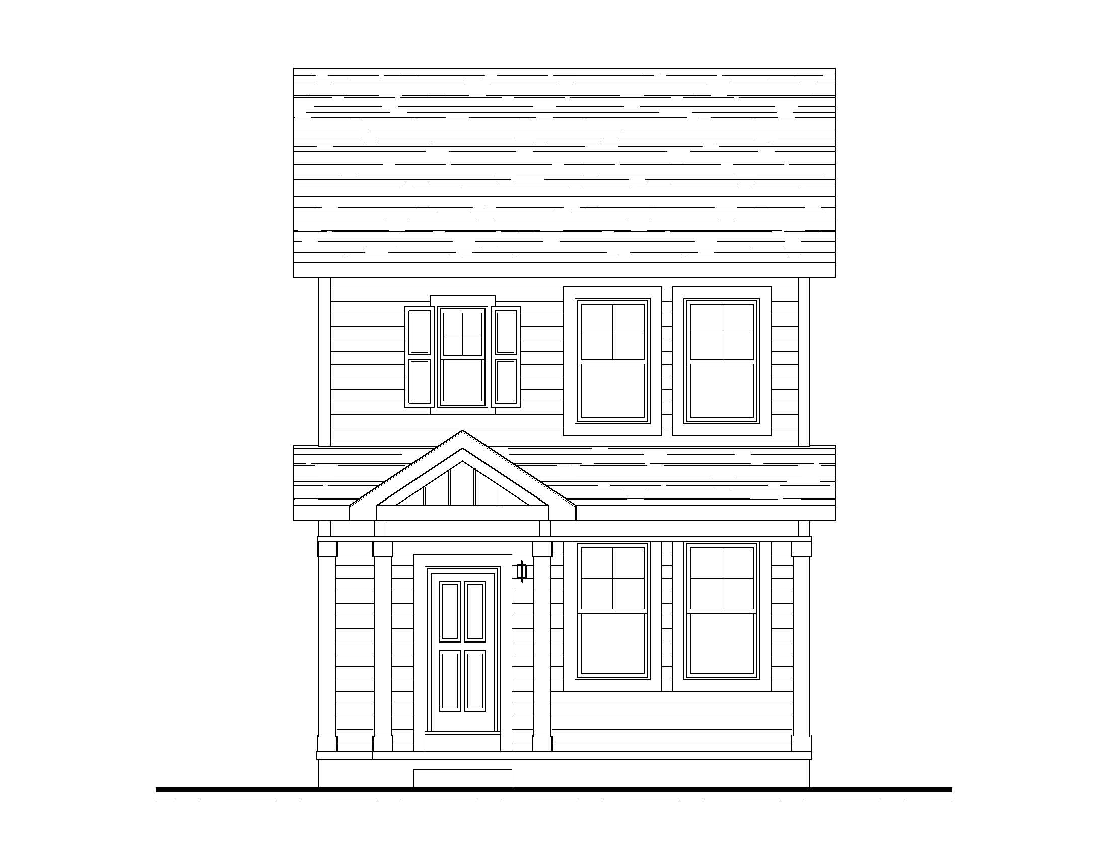 a traditional colonial featuring pastel siding white trim the roof is a dark charcoal color adding contrast windows reflect the clear blue sky the front doors are stained mahogany w glass panels surrounding the house a lush green lawn with colorful flower beds in shades of pink lavender and yellow the atmosphere is serene and welcoming with soft sunlight casting gentle shadows