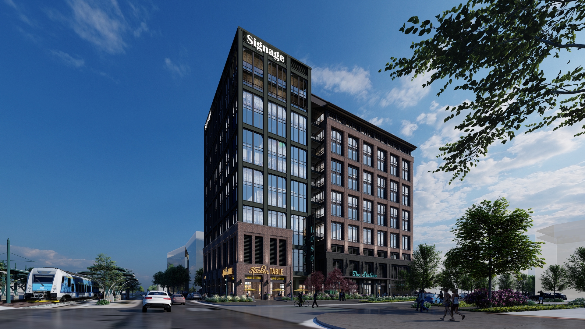 active office building rendering improve materials sunset gradient sky landscaping true colors