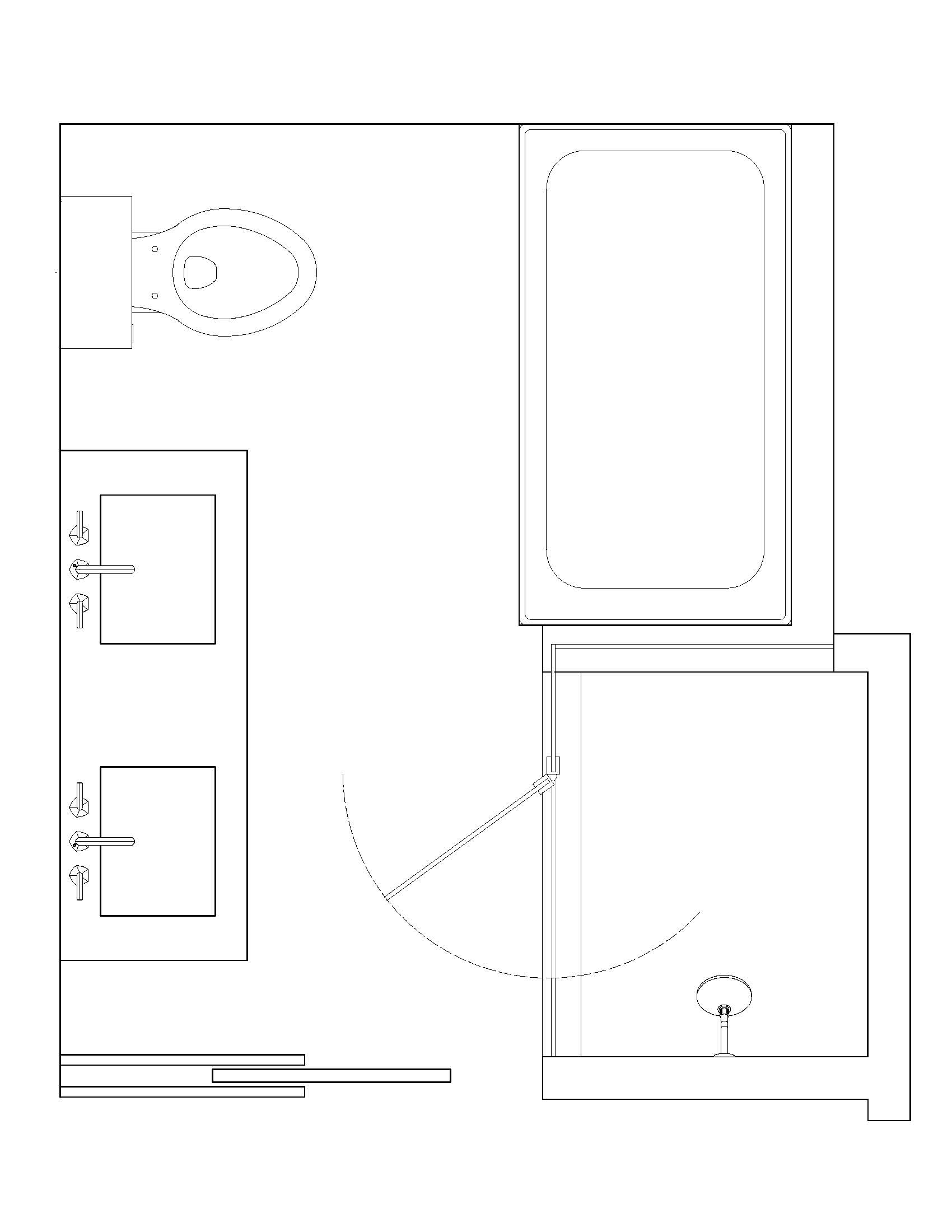 convert this floor plan into a architectural isometric 3d view of a bathroom show the space from an elevated angle with furniture walls and details visible use the same furniture as shows on the plan do not change the orientation of the floorplan