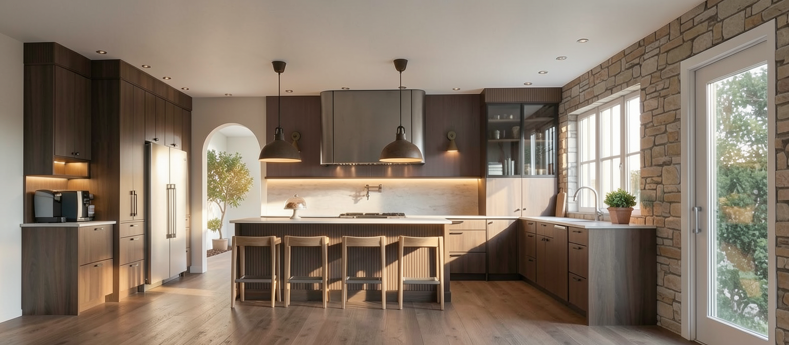 enhance realism of this architectural render while strictly preserving the original design keep identical layout furniture positions architecture and camera angle no new objects no design changes only improve lighting textures and realism soft global illumination subtle light bloom realistic reflections micro surface details professional architectural photography