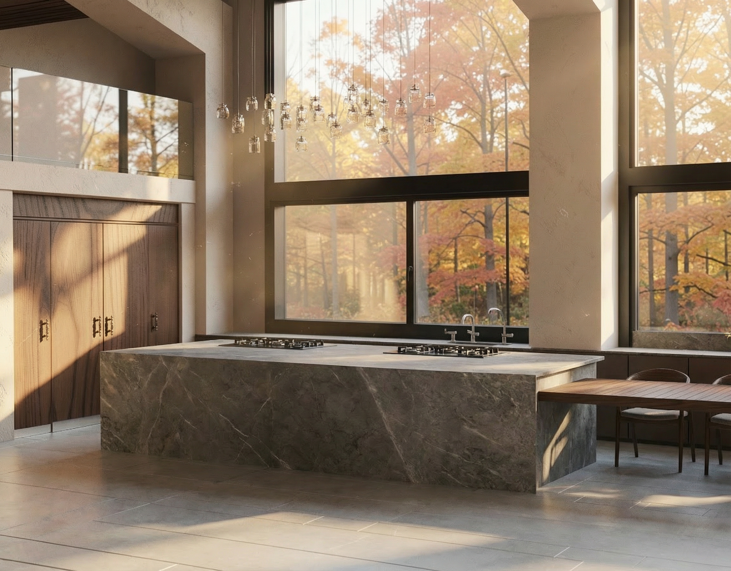 illumina la scena in modo diurno mantieni finestra a destra mantieni texture e oggetti invariati legno a terra nella parte degli uffici stesse doghe della boiserie mantieni il resto del pavimento e del soffitto grigio scuro accendi luci strip led verticale alla fine della boiserie in legno che spara verso l angolo del muro grigio accendi tv accendi faretti binario a soffitto accendi barra led a soffitto orientata verso la scritta a soffitto la deve illuminare radente sostituisci van della scena con van pi belli prosegui muro grigio scuro anche dietro i van
