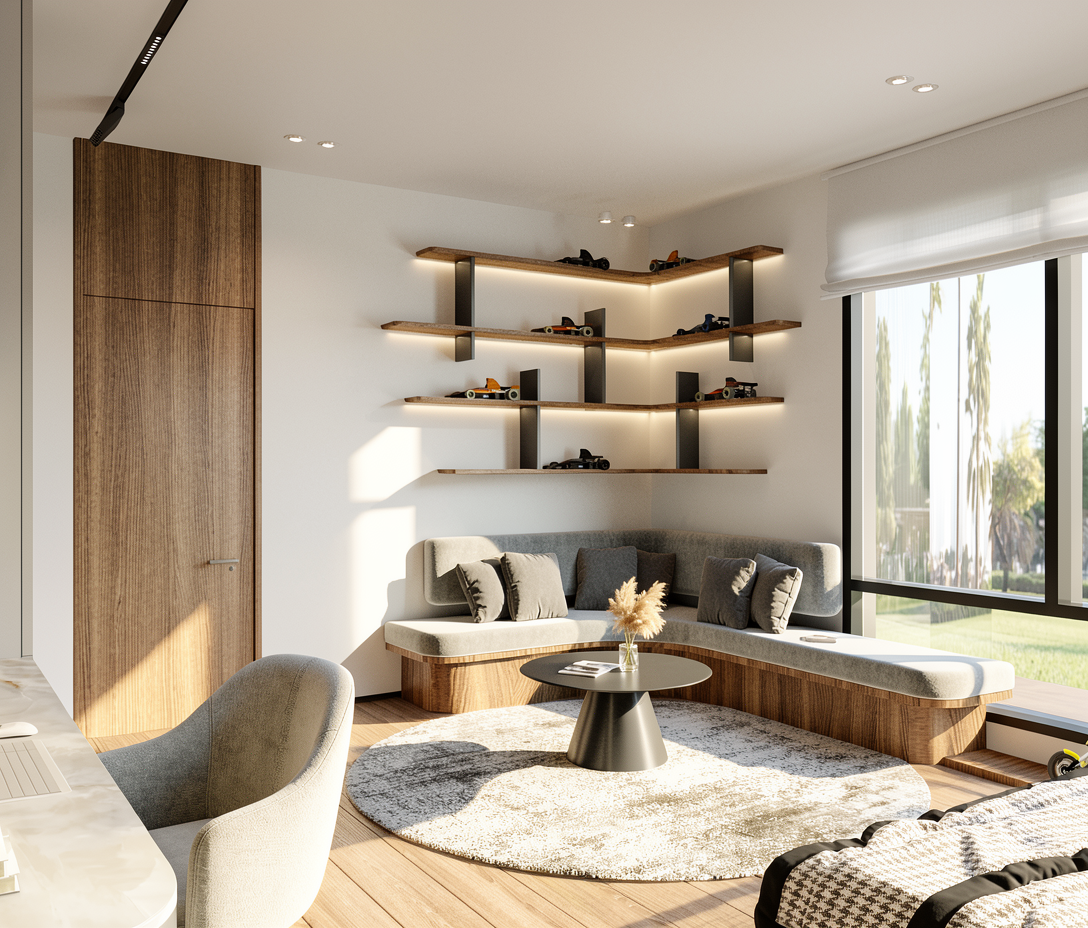 add arched glass to the patio doors and make as lifelike as possible bar stool chairs to have brass legs and a more modern luxury sofa