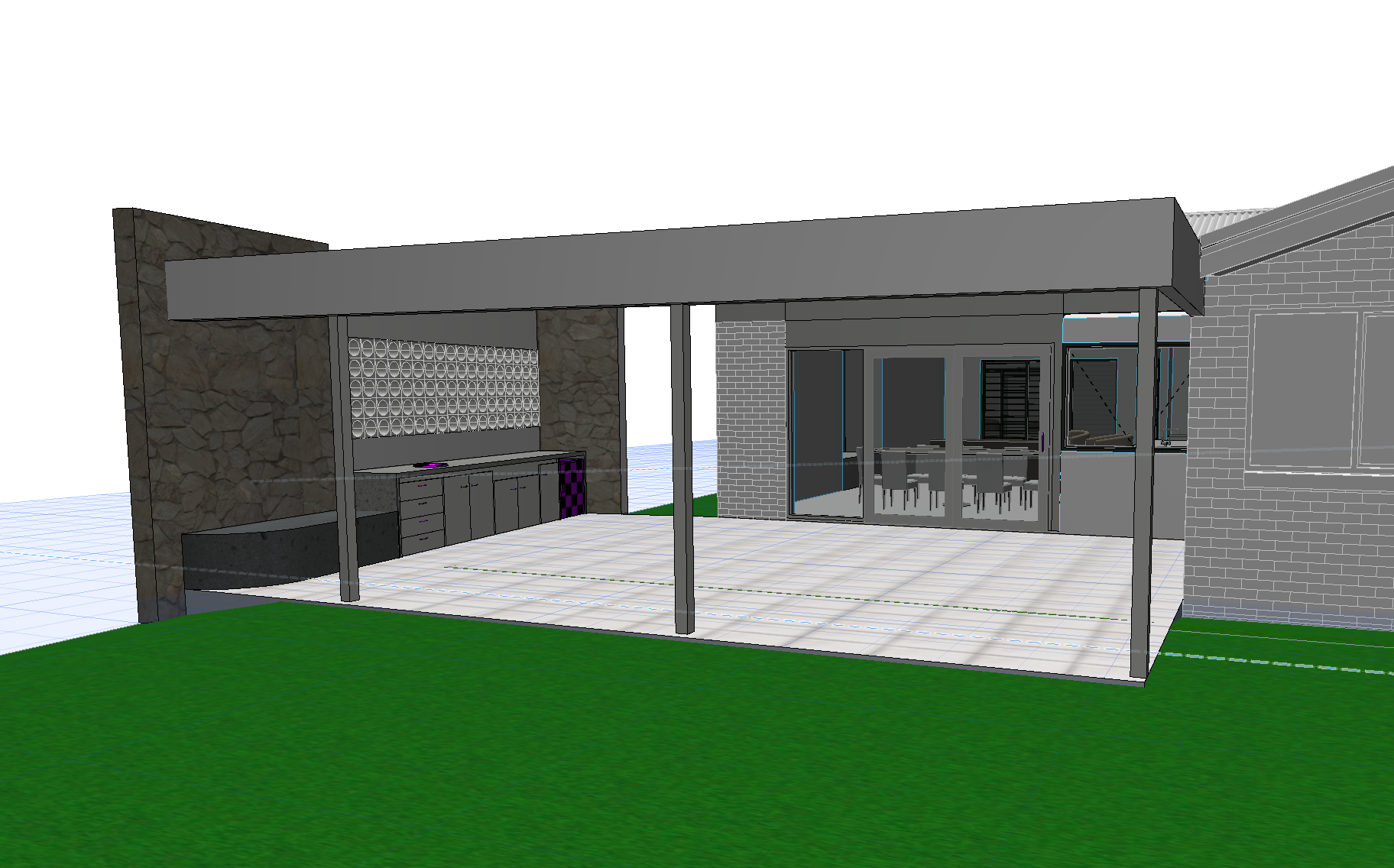 transform this archicad screenshot of the back entertaining patio of a house into a high res render