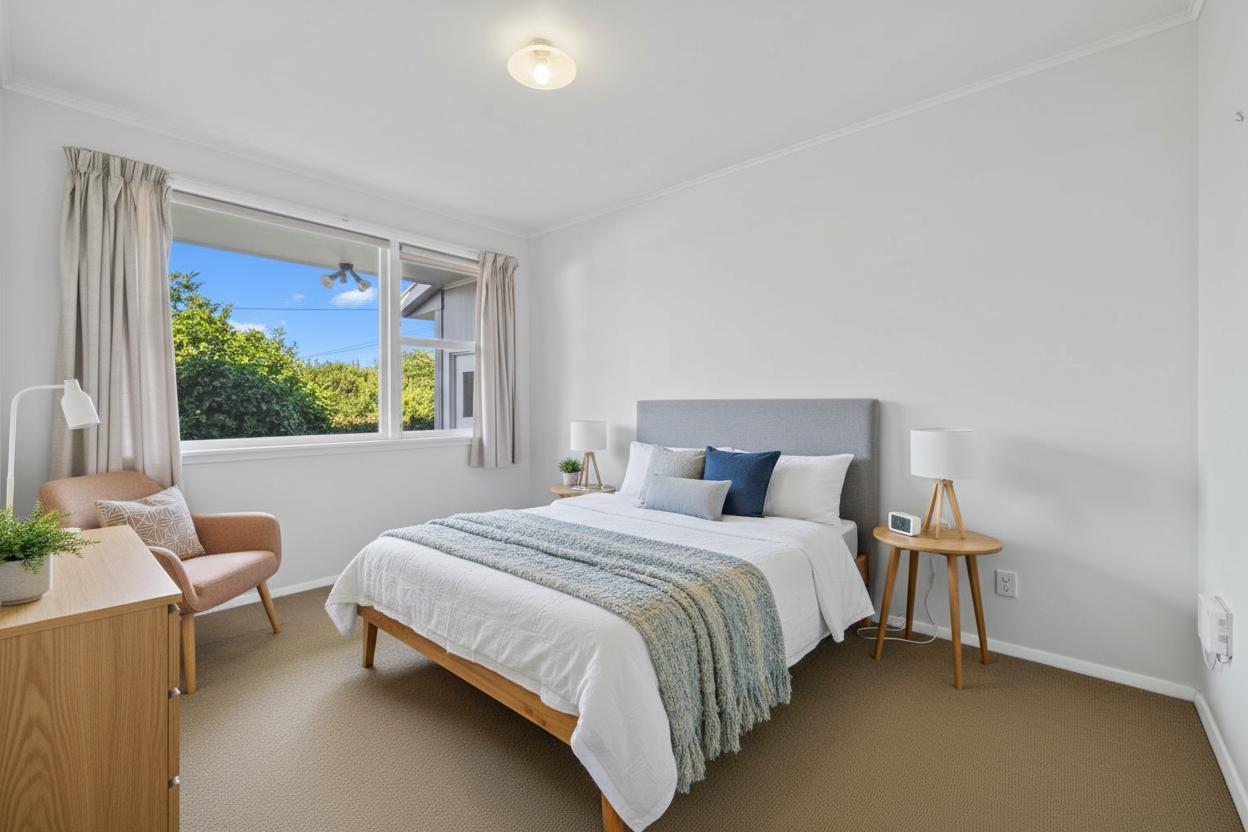 do not change features of house do not block glass doors furniture to fit space less furntireu