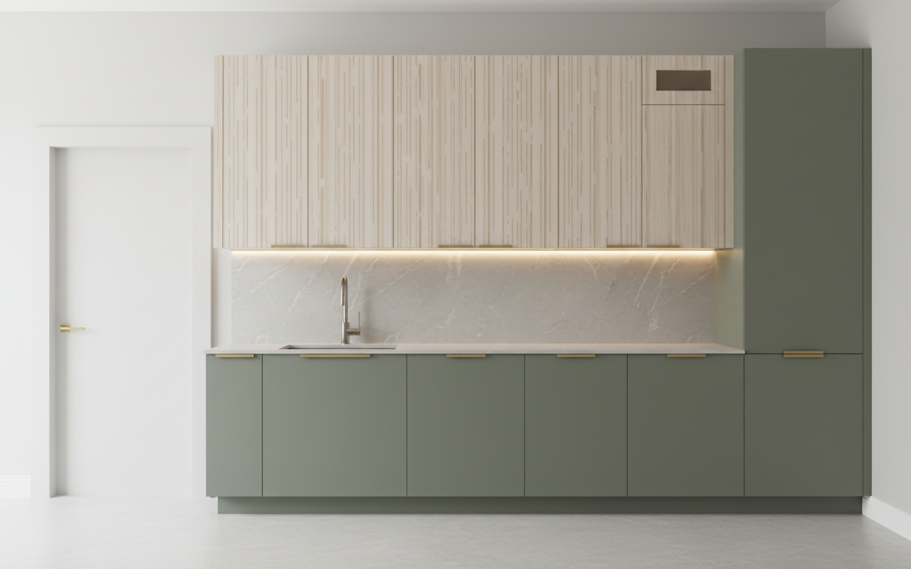 interior shot square off island side edges