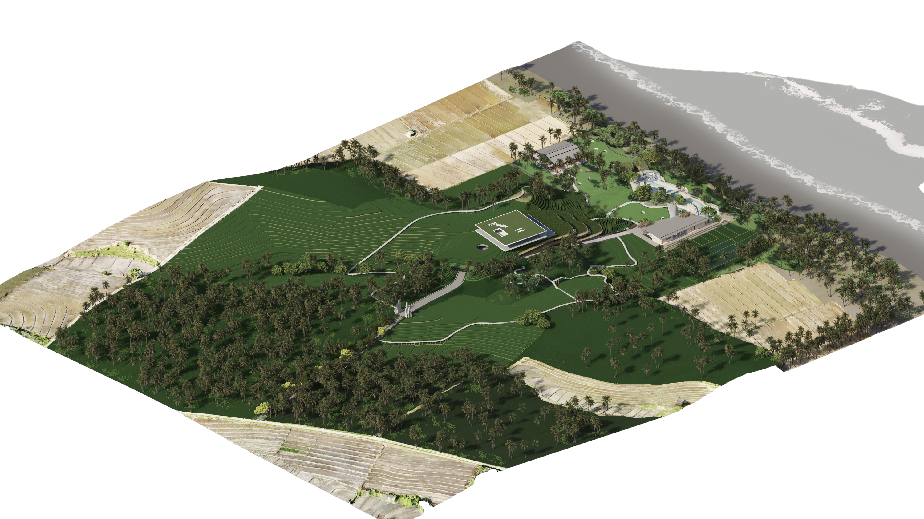 enhance the existing bird s eye view render into a photorealistic image without changing the composition or angle