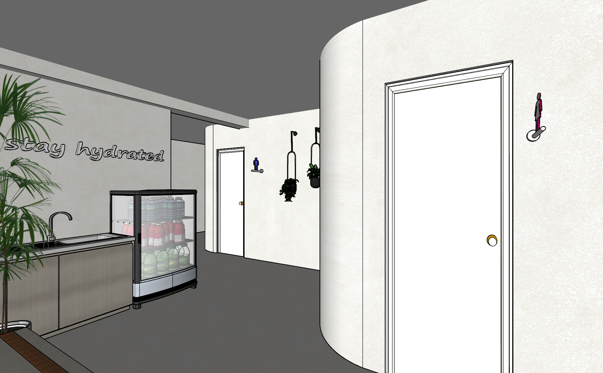 add vetical lights on the ceiling the walls and the floor is white concrete