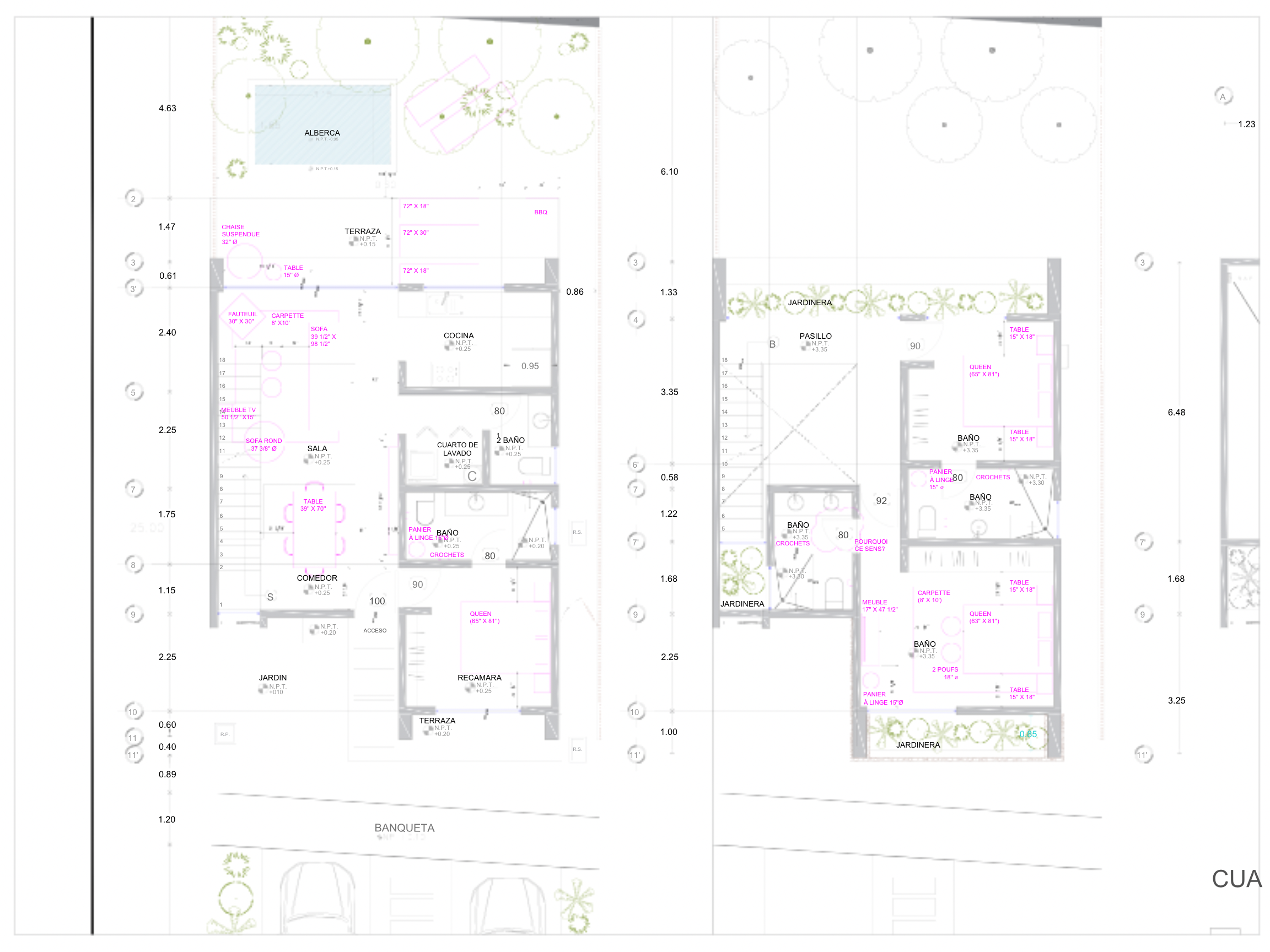 convert this floor plan into a realistic isometric 3d view of a full house show the space from an elevated angle with furniture walls and details visible keep every items and walls of the plan there is only 2 floors in the house use the same furniture as shows on the plan do not change the orientation of the floorplan