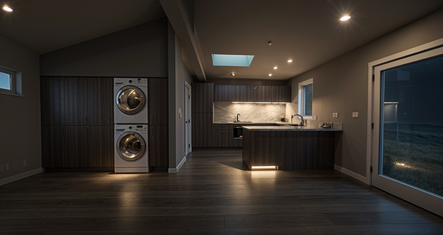 transform the modern structure into a traditional arts and crafts style residence replace flat surfaces with vertical board and batten siding with red tumbled brick near the base of the structure features low pitched gable roofs with wide overhanging eaves exposed decorative rafter tails and tapered square columns supporting a deep front porch bottom level is commercial cafe with outdoor seating with a sidewalk in the front and grass park to the side mirror the image windows should be vertically oriented multi pane true vertical oriented divided lite with thick wood trim incorporate earthy textures hammered copper hardware metal roofing and tumbled brick accents lighting should be warm featuring mission style amber glass lanterns high detail organic textures cozy and artisanal atmosphere